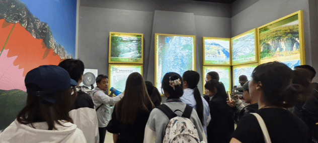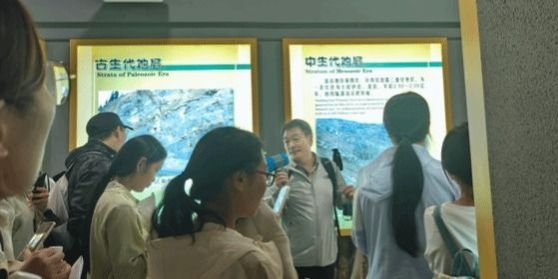 下午,师生们驱车前往嵩山地质博物馆。嵩山地质博物馆作为嵩山世界地质公园的重要组成部分,具有丰富的地质资源和深厚的历史底蕴。博物馆占地面积广阔,建筑风格独特,内部陈列着从太古代到新生代五个地质时期的岩石、矿物和古生物化石,被誉为“五代同堂”的天然地质博物馆。在讲解老师的带领下,学生们逐一参观了各个展厅,并认真聆听讲解员对各类岩石、矿物和古生物化石的详细介绍。通过参观活动,不仅让学生切实了解到嵩山地区复杂的地质构造演化历程,还让他们深刻感受到大自然的神奇魅力和地球历史的悠久。