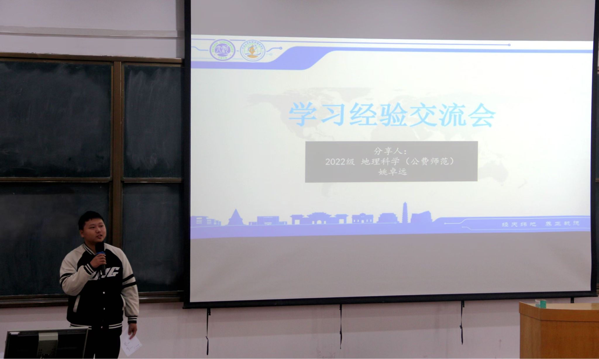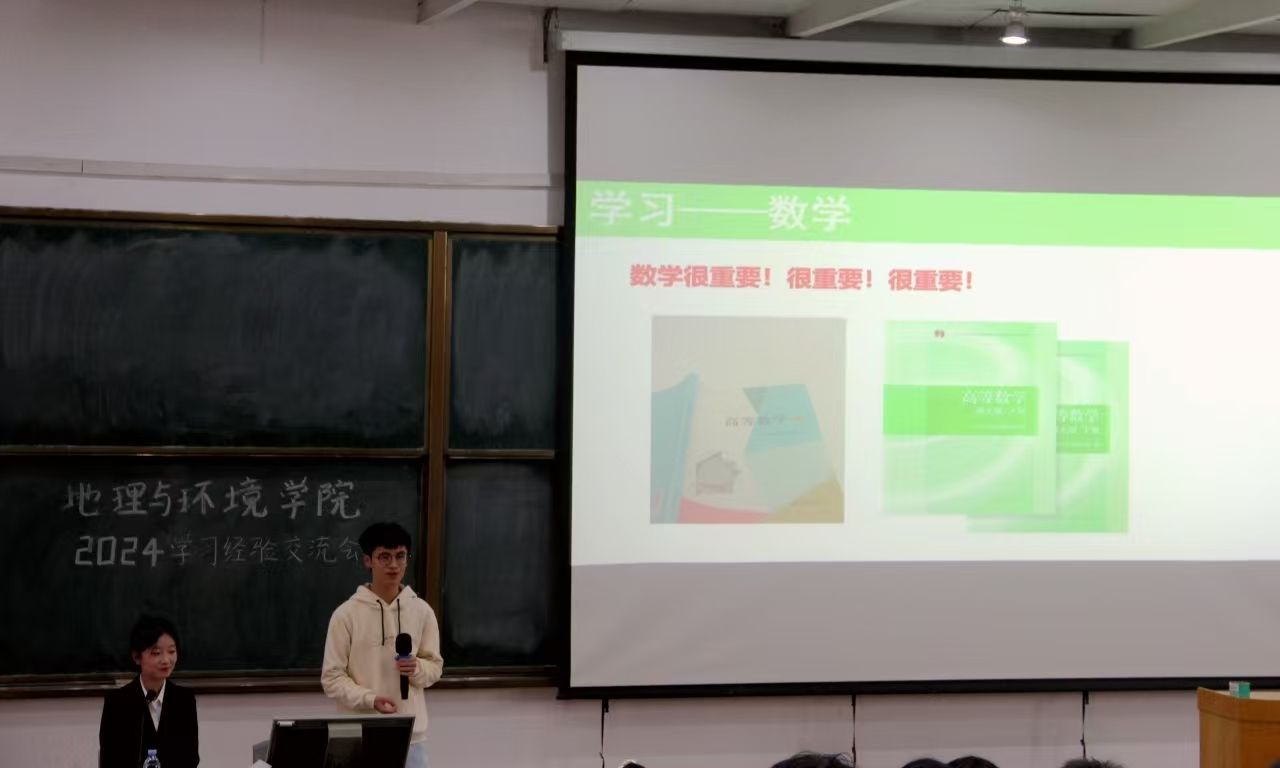 和学科建设情况进行简要介绍后,学生代表依次对各个专业进行解说,并向2024级新生分享自己在大学生活中的经验及对未来发展规划的建议。姚卓远从公费师范专业的角度出发,就专业优势与限制两方面进行阐述,强调了提升教学能力的重要性,提醒新生加强对三板内容的练习,为未来成为一名优秀的人民教师打下坚实基础。付小博则详细介绍了测绘工程专业的就业前景与发展现状,建议新生打好专业基础,明确专业需求,并给予新生鼓励。黄雅婷结合自身经历建议新生采取灵活的方式学习,将理论与知识相结合,鼓励新生积极与教师沟通,锻炼自己的科研能力。