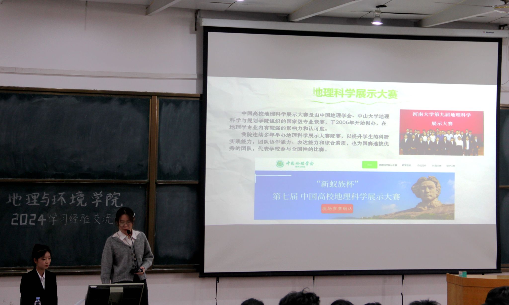 展示、学长学姐分享经验、介绍证书与奖学金等事项、走进各项赛事活动、互动环节五个部分。赵雨梦首先对六位优秀学生代表进行介绍并表示热烈欢迎,他们分别是2022级环境科学班黄雅婷、地理科学(公费师范)班姚卓远、地理科学班诸葛昱滢、人文地理与城乡规划班谭铎、李子璇,2023级测绘工程班付小博。在对麻豆传媒a片概况