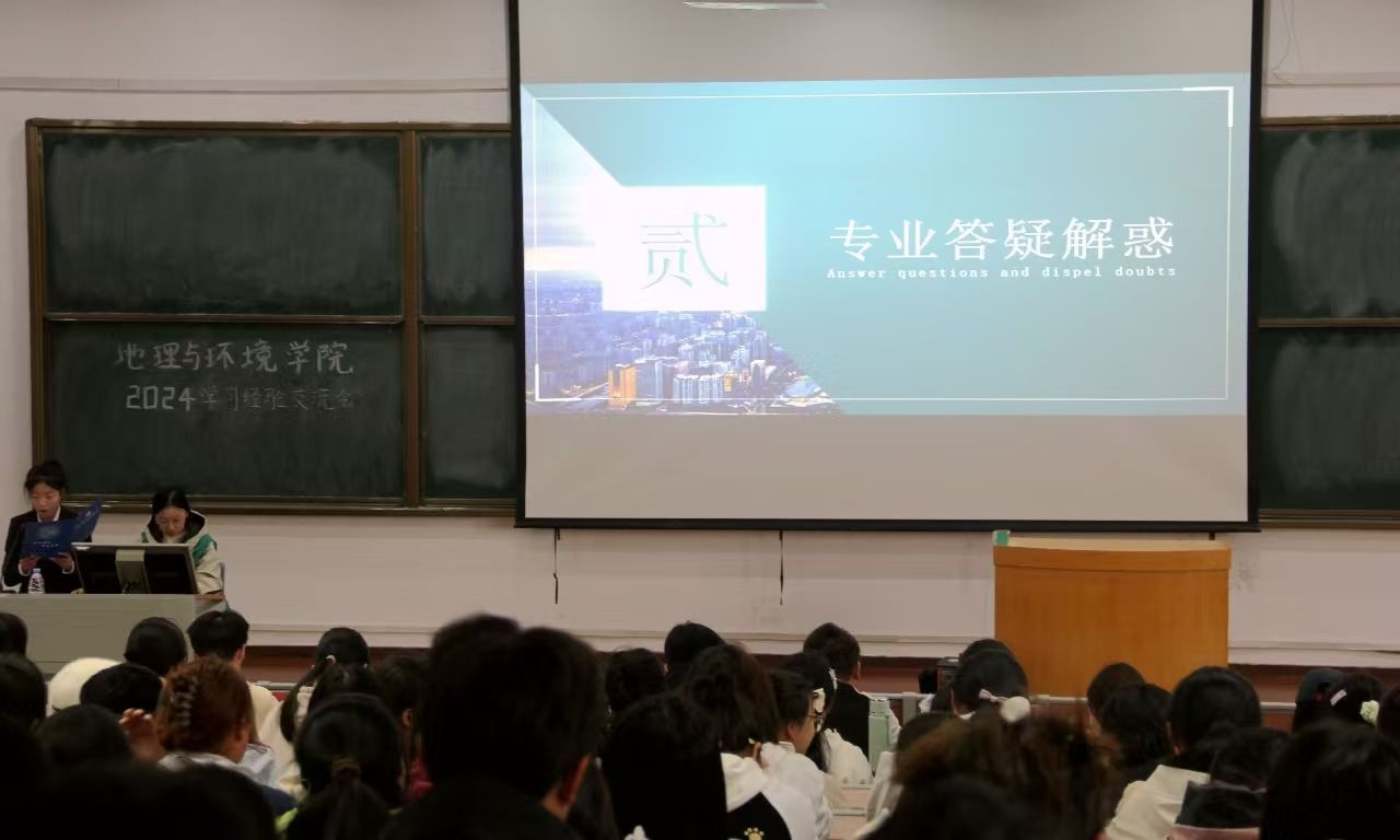 诸葛昱滢向新生们介绍了大学生入团、入党的要求及基本流程,并强调了入团、入党对于个人成长和发展的重要意义,鼓励新生们积极向党组织靠拢。其他学生代表则对各类学习证书及奖学金进行了详细说明。在走进各项赛事活动中,学生代表分别讲解了师范生讲课技能大赛、英语文化节、地理科学展示大赛、全国大学生创新创业大赛、土地国情调查大赛等比赛的赛事流程。谭铎与李子璇建议新生及时获取比赛信息,提前做好赛事准备,扩大知识储备,不断提升学习能力。在最后的互动环节中,新生们积极提问,学生代表们耐心解答,无论是关于专业学习的困惑,还是对未来发展的迷茫,都在交流中得到了一一回应。交流会在友好、热烈的氛围中落下帷幕。