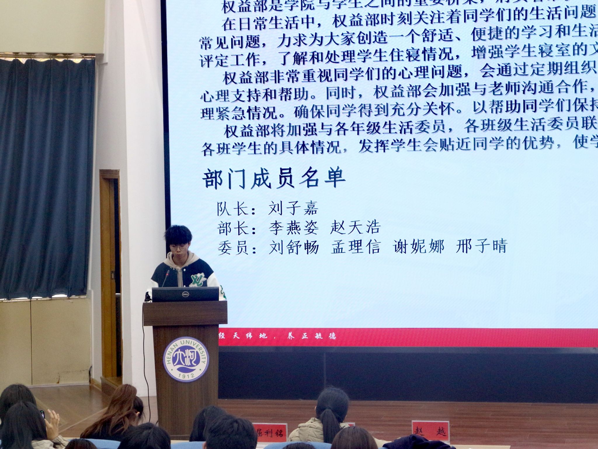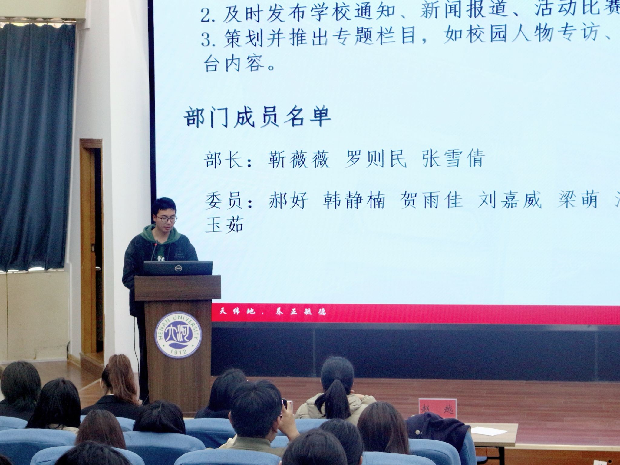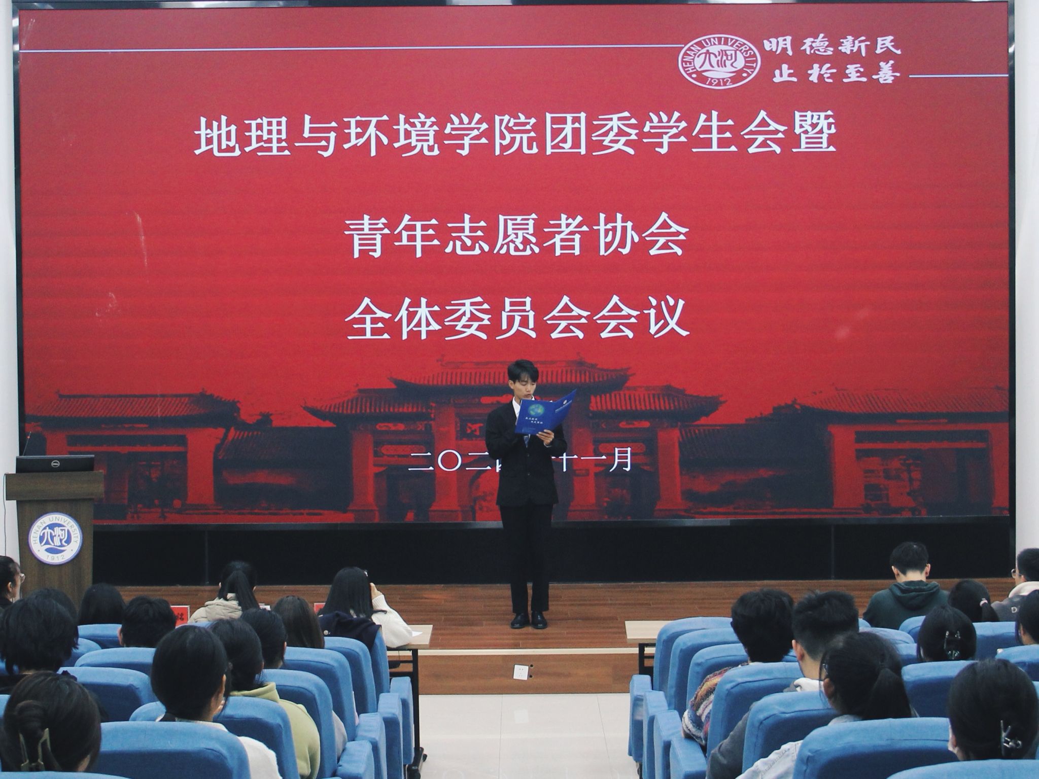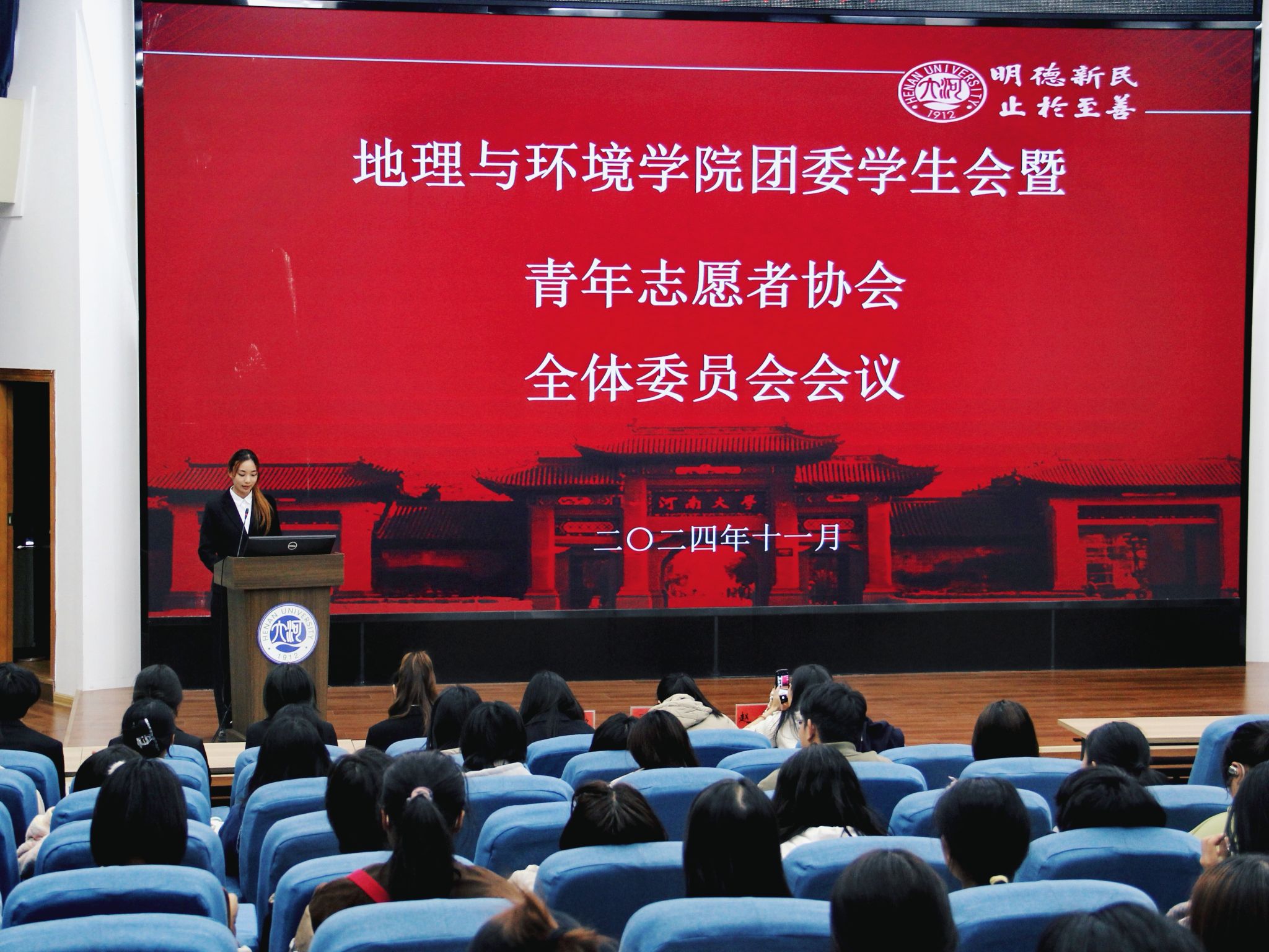 11月7日下午,我院2024届团委学生会暨青年志愿者协会第一次全体委员会于金明校区锥形报告厅举行。学院团委书记、2024级本科生辅导员赵越,2022级、2023级本科生辅导员马利群、屈利铭出席本次会议。会议由2024级本科生张正阳主持。