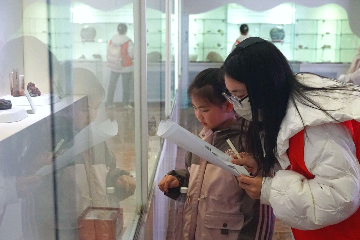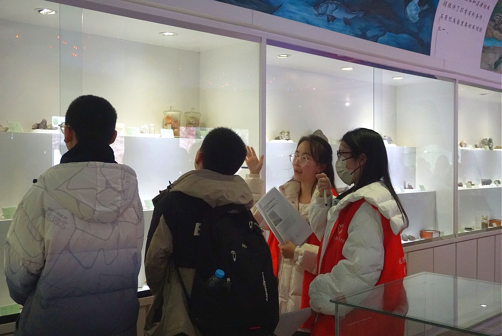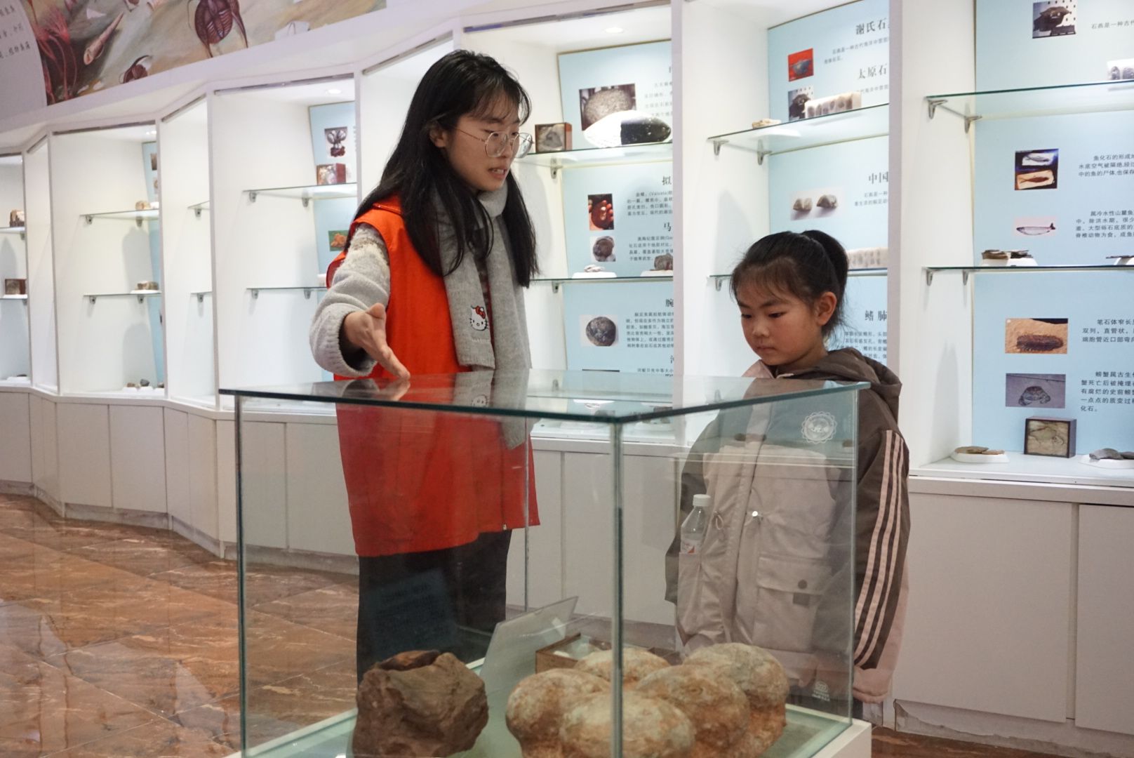 在正式开始之前,志愿者向孩子们详细讲解了东英自然博物馆的陈设布局,阐述其所蕴含的科普价值与重要意义,让大家对其有了初步了解。随后,孩子们在志愿者的带领下参观了博物馆内的各类展品。孩子们首先参观了古生物化石展区,志愿者们生动的解说,让化石所蕴含的漫长历史与生命奇迹跃然眼前,极大激发了孩子们对地理学科的浓厚兴趣和探索热情。步入矿物区,孩子们穿梭在琳琅满目的矿物展品间,惊叹于它们美妙的光泽与细腻的纹理,真切领略到了大自然的神奇魅力。来到岩石区,志愿者们细致讲解火成岩、变质岩和沉积岩的形成奥秘,让孩子们对矿物标本的奇特性有了深刻认知。