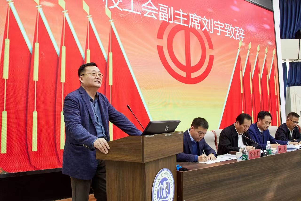 刘宇代表校工会对地理与环境学院七届三次教职工暨工会会员代表大会的胜利召开致以热烈的祝贺,并表示此次大会的召开对动员全院广大教职工和全面促进学院高质量发展、创新性发展具有十分重要的意义。他指出,“近年来地理与环境学院全体教职工吃苦耐劳,甘于奉献,成功举办了第八届海峡两岸经济地理学研讨会、中国地理学会春季年会、中国地理学会农业地理与乡村发展专业委员会2024年学术年会、合作减贫与乡村发展研讨会等国内外学术会议。在黄河流域高质量发展、中原城市群建设、乡村振兴、环境生态保护等领域积极作为,充分展现出地理与环境学院拼搏进取、团结协作、开拓创新的精神。校工会也将继续大力支持学院发展,共同推动地理与环境学院在未来的发展道路上创造更加辉煌的成就。”