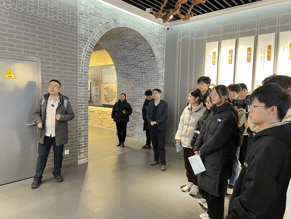 活动首站为印象巩义城市展厅,主要围绕巩义市的历史沿革、城市规划等多个方面展开实习。进入展馆,映入眼帘的是“诗圣故里 河洛巩义”八个大字,抬头则是悉心勾勒的邙山洛水,这使学生们深刻领略到巩义深厚的历史文化底蕴。根据展览设置,师生们首先走进多媒体沉浸式艺术演绎厅,其通过声、电、光、影等视频宣传片形式,围绕着巩义的山、水和城展示了巩义市的整体概况。康百万、慈云寺、石窟寺、千年帝陵、诗圣杜甫、洛神赋、河洛汇流等,无不让师生为之震撼,并深刻地感受到了大美巩义的独特魅力。