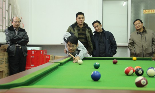 室内竞技项目比赛分为台球、五子棋、中国象棋、踢毽子、乒乓球五类个人单项比赛和双升集体比赛两个内容。今天为第一天的淘汰赛,老师以抽签的方式分组。在象棋个人项目比赛上,我院教职工思维缜密,态度严谨。随着棋子的起伏轻落,他们时而紧皱眉头,时而展眉轻笑。在台球赛中,老师们也在球桌上用推杆演绎了一场场精彩绝伦的比赛,令在场观众不时发出阵阵叫好声。与此同时,其他个人项目也在进行中,教师们在欢声笑语中结束了第一天的比赛。