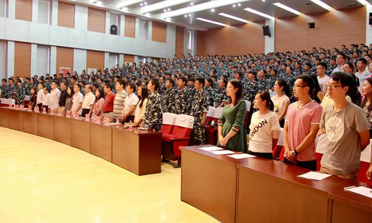 海外讲座教授、美国应用地理学会主任李杰教授,院长秦耀辰及其他相关领导、老师、军训教官和500多名本、硕、博新生参加典礼。典礼由学院党委书记闫峻主持。