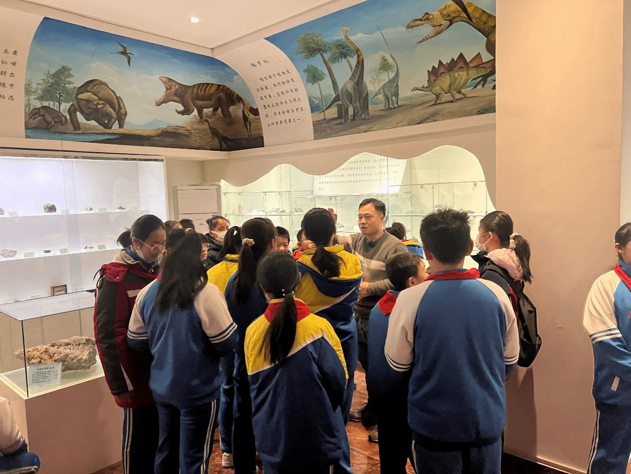 活动共分为三部分内容。首先,师生们分组参观了学院东英自然博物馆,该博物馆是中国科学技术协会在河南省高校唯一设立的全国科普教育基地的重要组成部分,馆内所陈列标本不仅种类丰富,而且典型珍贵者甚多。陈英勇老师为师生们细致讲解了博物馆内的岩石、古生物化石等各类展品,并与同学们积极互动,极大激发了孩子们对地质知识的浓厚兴趣和探索热情。