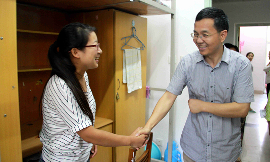 其间,每到一个宿舍,老师们都会亲切地问起同学们来自哪里、在这吃的、住的还习惯吗,晚上热吗。对于新生提出的问题,老师们也都详细地解答了新生的疑惑。