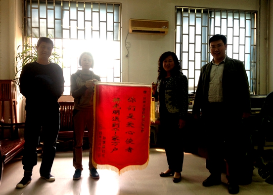 4月8日下午,开封市孙李唐社区负责人代表来到环境与规划学院,为我院赠送锦旗,内容为“你们是爱心使者,将光明送到千家万户”,以感谢和表彰我院学子的志愿行为。参加本次赠旗仪式的有北郊乡团委书记,孙李唐社区代表葛丹丹,麻豆传媒a片