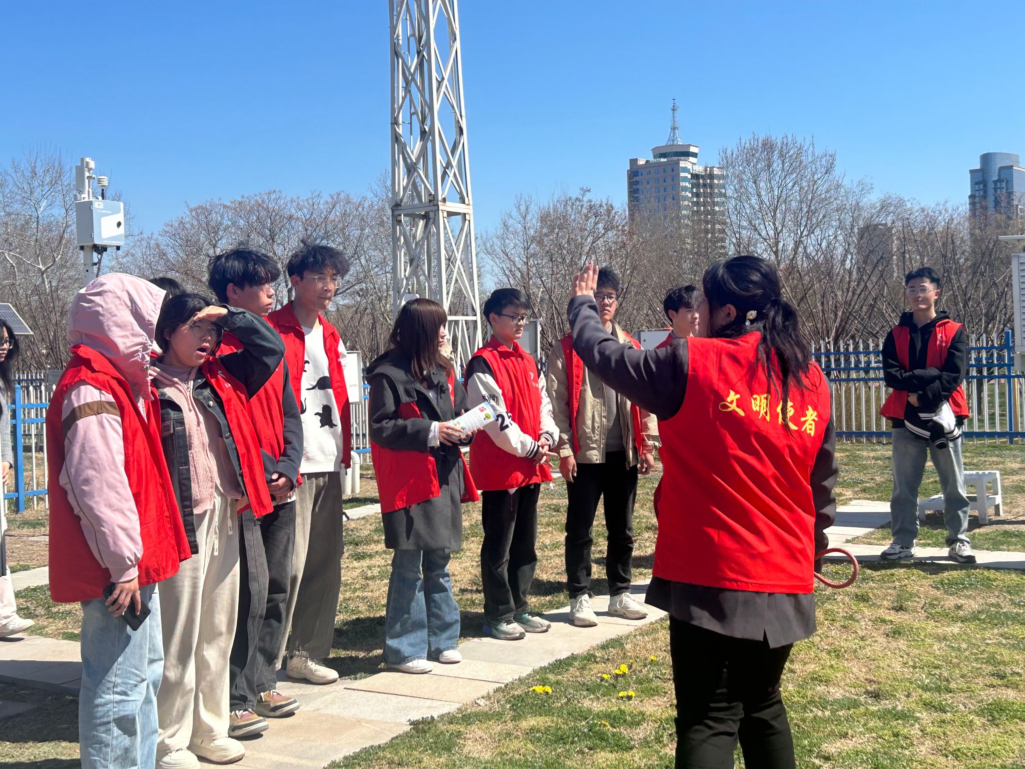 学生近距离接触各类气象监测设备。从测量气温、湿度的百叶箱,到监测风向、风速的风向标,工作人员详细介绍设备的功能与运行原理,让学生亲眼目睹气象数据的采集过程,将抽象的知识具象化。麻豆传媒a片