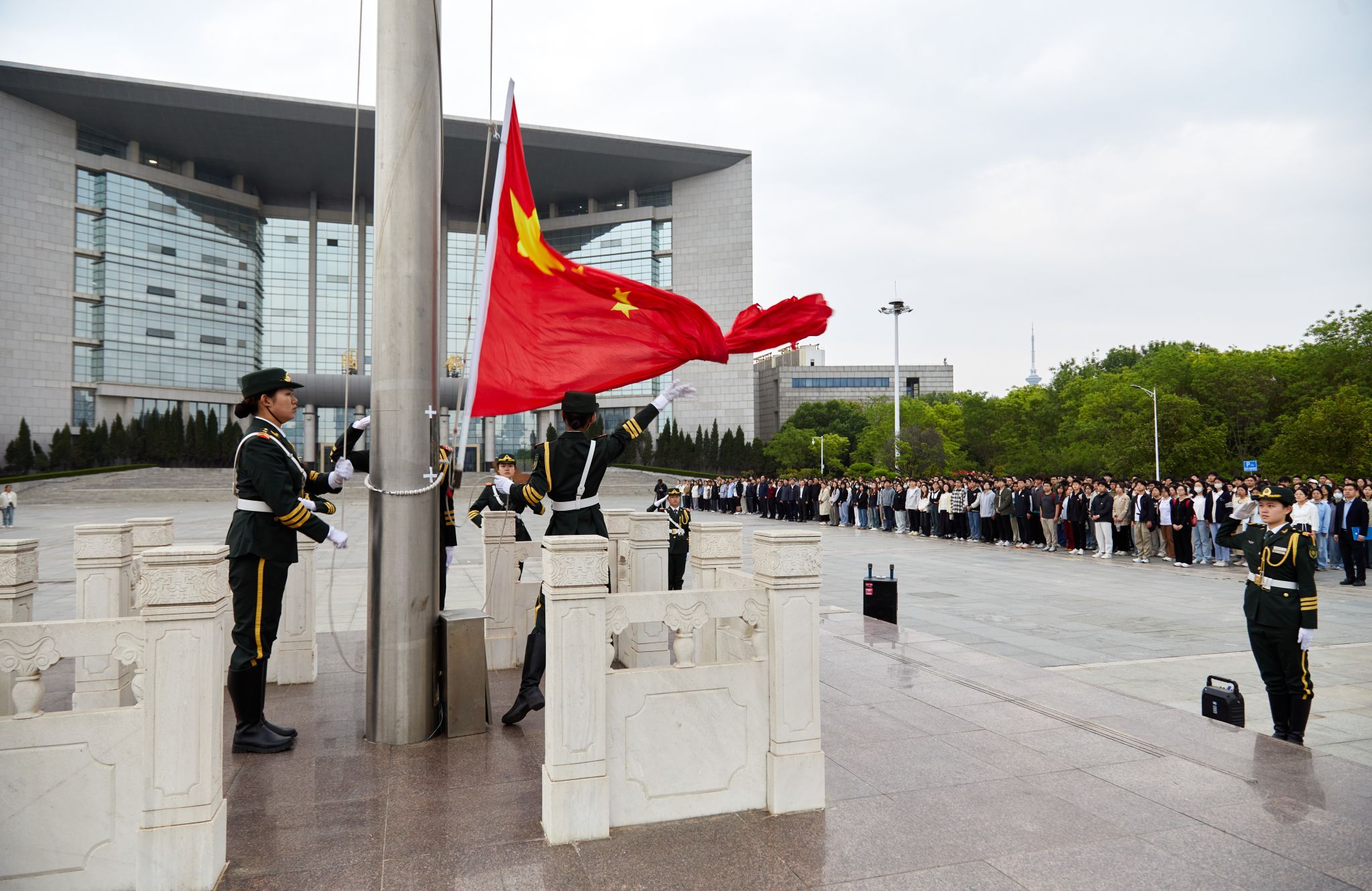 在金明校区明德广场举行升旗仪式。麻豆传媒a片