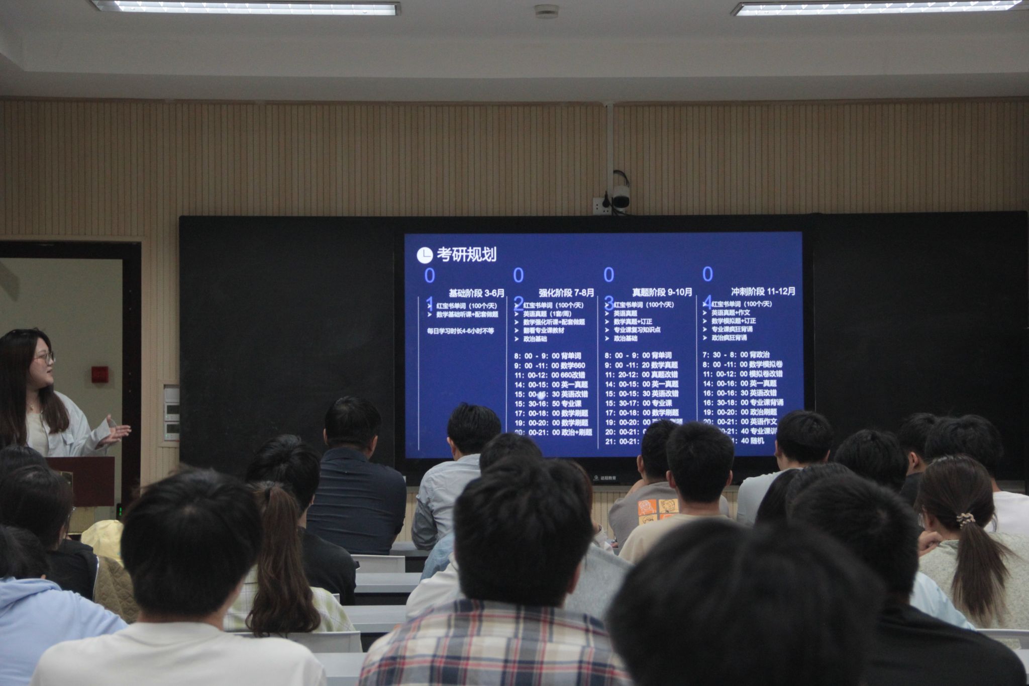 赵永进行了总结发言。他强调备考要注重基础,建立整体复习框架,合理安排任务;准备过程中要通过自我评估,明确自身薄弱点,制定个性化的复习计划,有针对性地进阶提升;他还提醒学生们重视身体素质,适当锻炼,保持良好状态。最后,他勉励大家持之以恒,以坚定的毅力和积极的心态成功考研上岸。