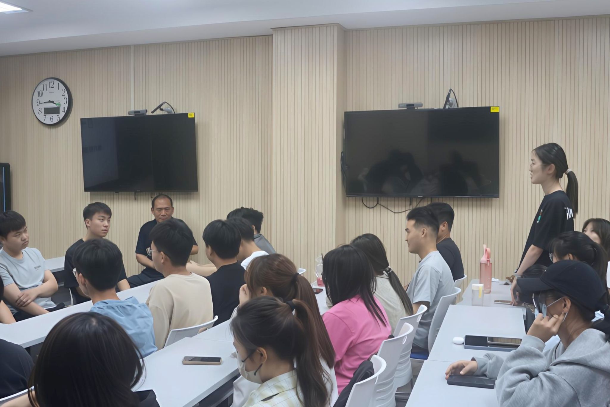 在问题解答环节,参会学生踊跃提问,积极提出自己对考研备考的规划和准备等方面的疑惑。学生代表们耐心倾听并认真解答了这些问题。过程中,常要来分享了自己在攻克英语阅读长难句以及提升英语整体水平方面的经验,并推荐了自己所学习的相关课程,为学生们提供了实用的学习方法和资源。曹紫帆则对调剂的流程和注意事项进行了详细解答,帮助我院学生提前了解调剂环节,为可能出现的调剂情况做好充分准备。