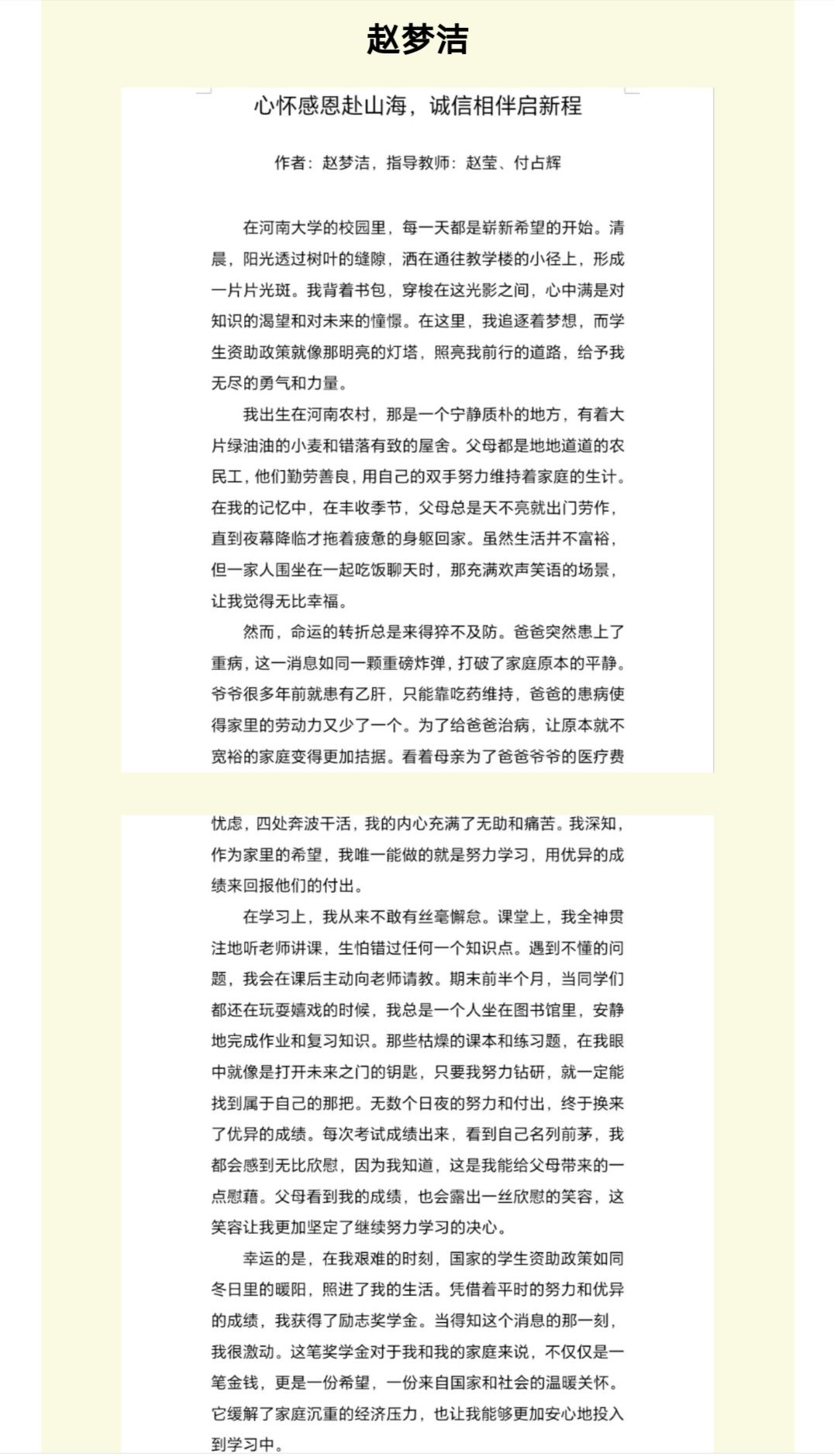 以文字为媒、以行动为证,用心用情讲好资助故事,推动形成“以资助促育人,以诚信促成长”的良好氛围。未来,学院将继续深入推进学生资助工作,加强诚信教育引导,讲好新时代资助育人故事,激励更多青年学子坚定理想信念、心怀感恩之情、践行诚信之道,争做有担当、有温度的时代新人。