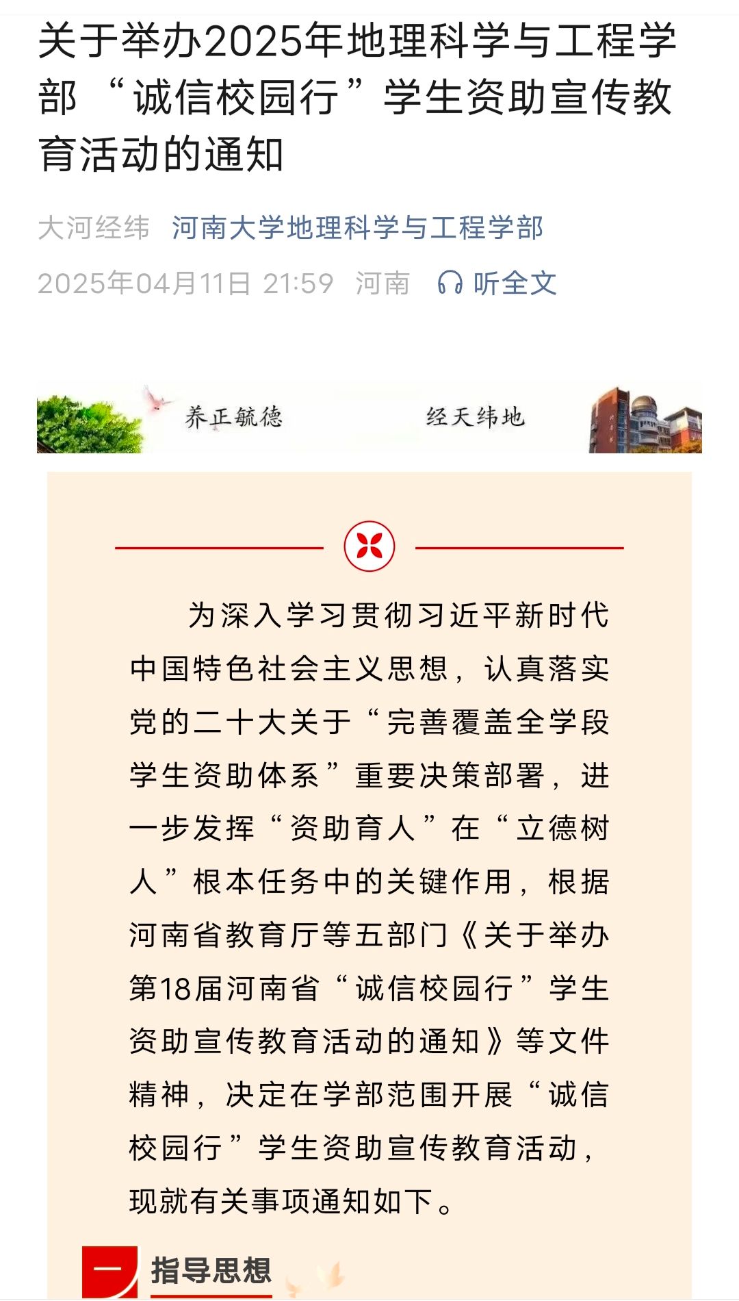 于2025年4月10日至4月20日组织开展了“诚信校园行”学生资助宣传教育系列活动,在全院范围内掀起了一场弘扬诚信美德、厚植感恩情怀、宣传资助政策的热潮。