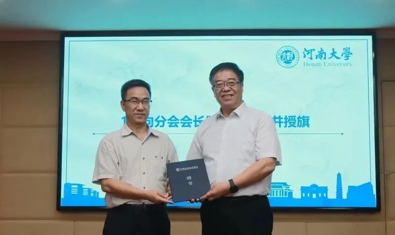 分会正式成立,并宣读了第一届理事会成员名单。傅声雷向会长郑新奇颁发聘书并授旗。苗长虹、乔家君、潘少奇分别为当选的副会长、秘书长、副秘书长及理事们颁发聘书。