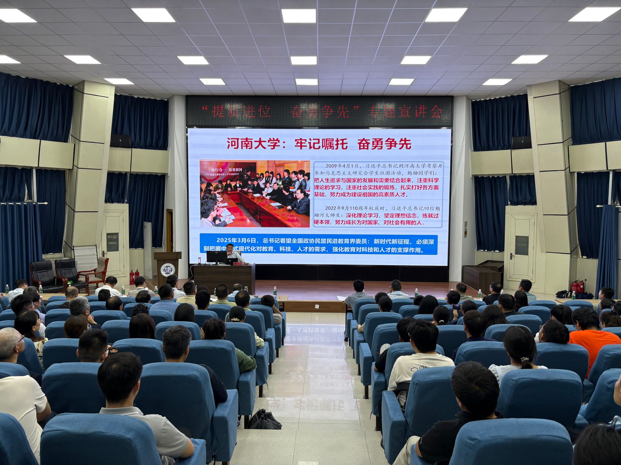 6月19日下午,校党委书记季波在金明校区锥形报告厅作“提质进位,奋勇争先”专题宣讲,校高层次人才办公室主任路杨、党委办公室副主任谢宇飞等同志出席,麻豆传媒a片