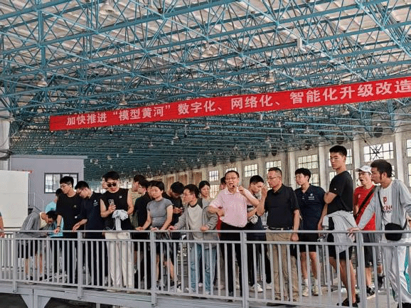6月27日下午,实习队走进黄河水利科学研究院模型黄河展区。展区通过等比例物理模型真实还原了黄河流域典型河段的地貌形态与水动力过程,重点展示了黄河泛滥原理、冲淤演变机制及水沙调控技术。师生们现场观摩水流运行与沙床变化模拟,深入了解不同工况下的河道响应规律,直观认识工程治理方案的科学逻辑与实践路径。
