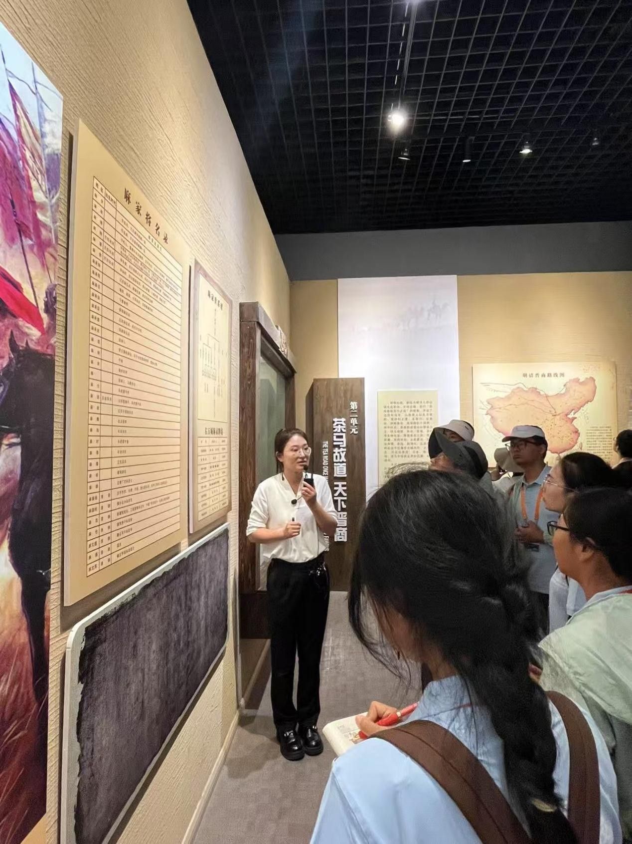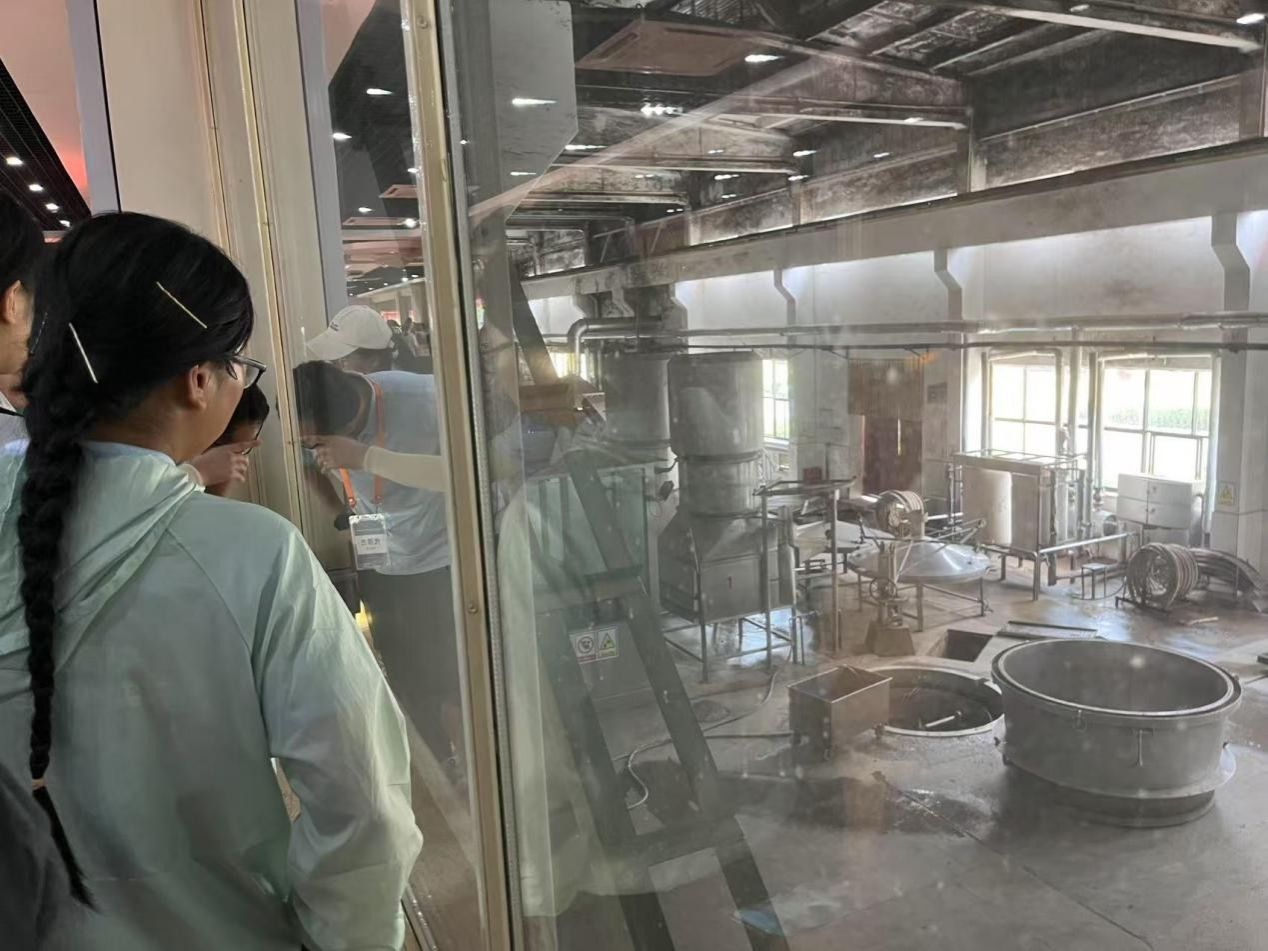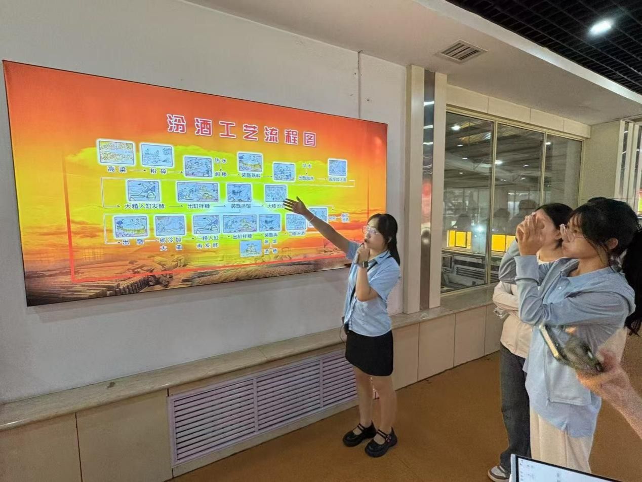下午2:00,实习队抵达汾酒产业园。在汾酒博物馆,队员们沉浸于跨越四千年的酿酒文化长河。通过丰富的历史文物、详实文献与历代酿酒器具,系统梳理了汾酒从古代酿造技艺萌芽到现代品牌确立的发展脉络,深刻领悟其作为清香型白酒典范所承载的“中国酒魂”文化精髓。现场品尝纯正的原浆汾酒,更是让队员们对“清、爽、绵、甜、净”的独特风味有了直观感受。随后,实习队深入现代化生产车间。在这里,亲眼见证了国家级非物质文化遗产——“地缸发酵”、“清蒸二次清”等核心传统工艺,如何与高效、精准的现代流水线作业实现完美融合与传承。队员们特别关注汾阳特有的地理环境(如水质、土壤、气候)对当地优质高粱种植及独特微生物菌群形成的决定性影响,并探讨了“汾酒地理标志产品”保护的价值。此次实地探访,不仅让书本上的地理知识与产业实例生动结合,更深化了学生对地域资源禀赋、传统工艺保护、现代产业升级及人文地理协同发展内在联系的理解。
