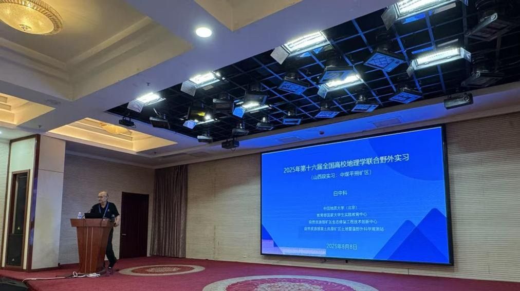上午8:30,实习队齐集酒店会议室。中国地质大学(北京)白中科教授聚焦煤矿开采后的生态修复作了报告,他以中煤平朔集团安太堡露天煤矿这一改革开放“试验田”为案例,从安太堡露天煤矿的基地概况、科教功能等维度展开,详细介绍了露天采矿工艺与地貌重塑技术,并阐释了“地貌重塑、土壤重构”等五元共轭理论,为师生们清晰呈现了煤矿生态修复从理论到实践的完整体系。