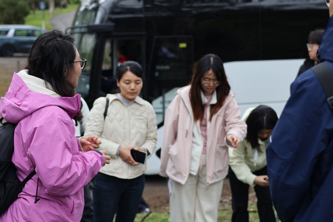 实习队师生一早抵达瓦南布尔(Warrnambool)观鲸台,恰逢南露脊鲸季节性迁徙的重要时段。同学们运用所学地理知识,现场分析海洋生态系统特征与物种保护现状,深刻感受海洋环境的魅力与生态保护的重要性。
