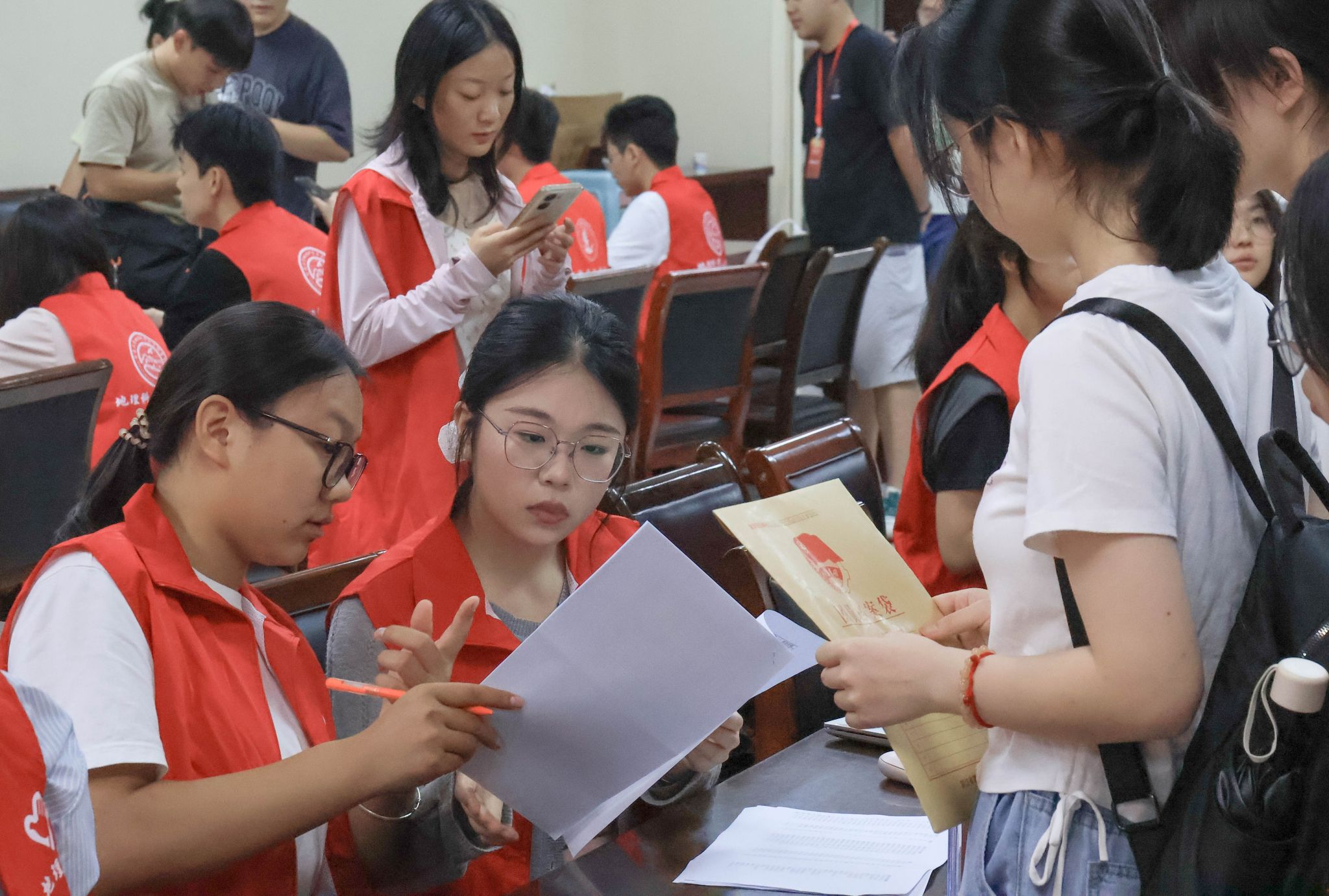 8月30日上午,学部迎新报到工作正式启动。学部以“暖心、高效、有序”为宗旨,多维布局构建有序迎新全流程:在学校大西门学部设置迎新引导点,志愿者们早早守候,笑容洋溢,为初到校园的新生指引路径、解答疑问,传递第一缕学部温情;地学楼二楼报告厅作为迎新大本营,承担注册咨询、资料核验等一站式服务,流程清晰、秩序井然,极大提升了报道效率。同时,学部注重文化育人与价值传递。学部门口有序陈列的学生竞赛成果展板,生动展现麻豆传媒a片