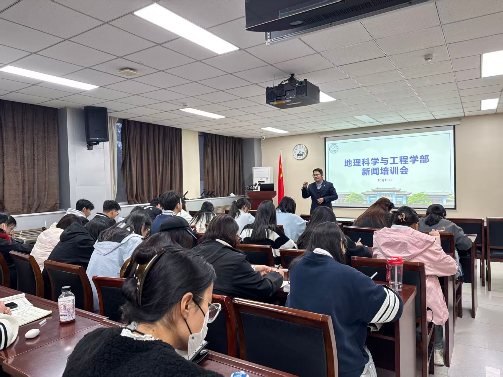 于地学楼二楼215报告厅召开新闻宣传工作培训会。麻豆传媒a片