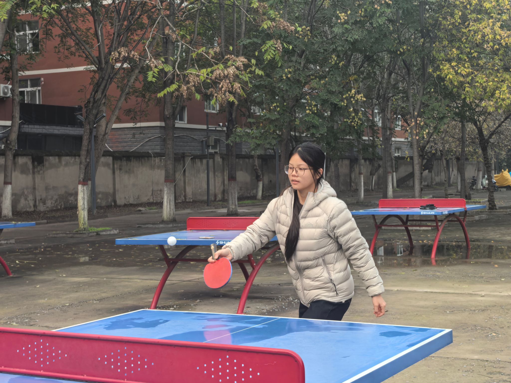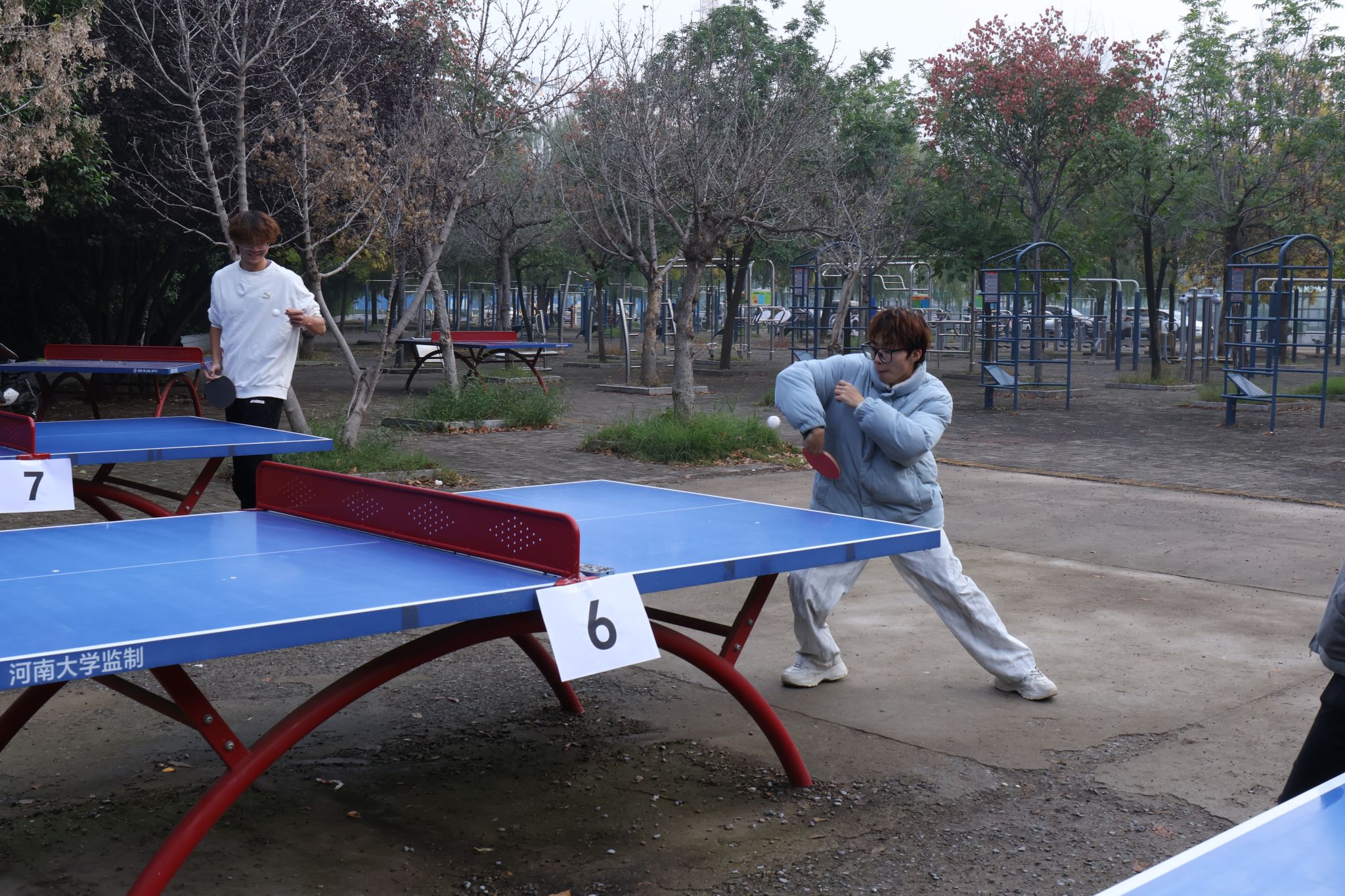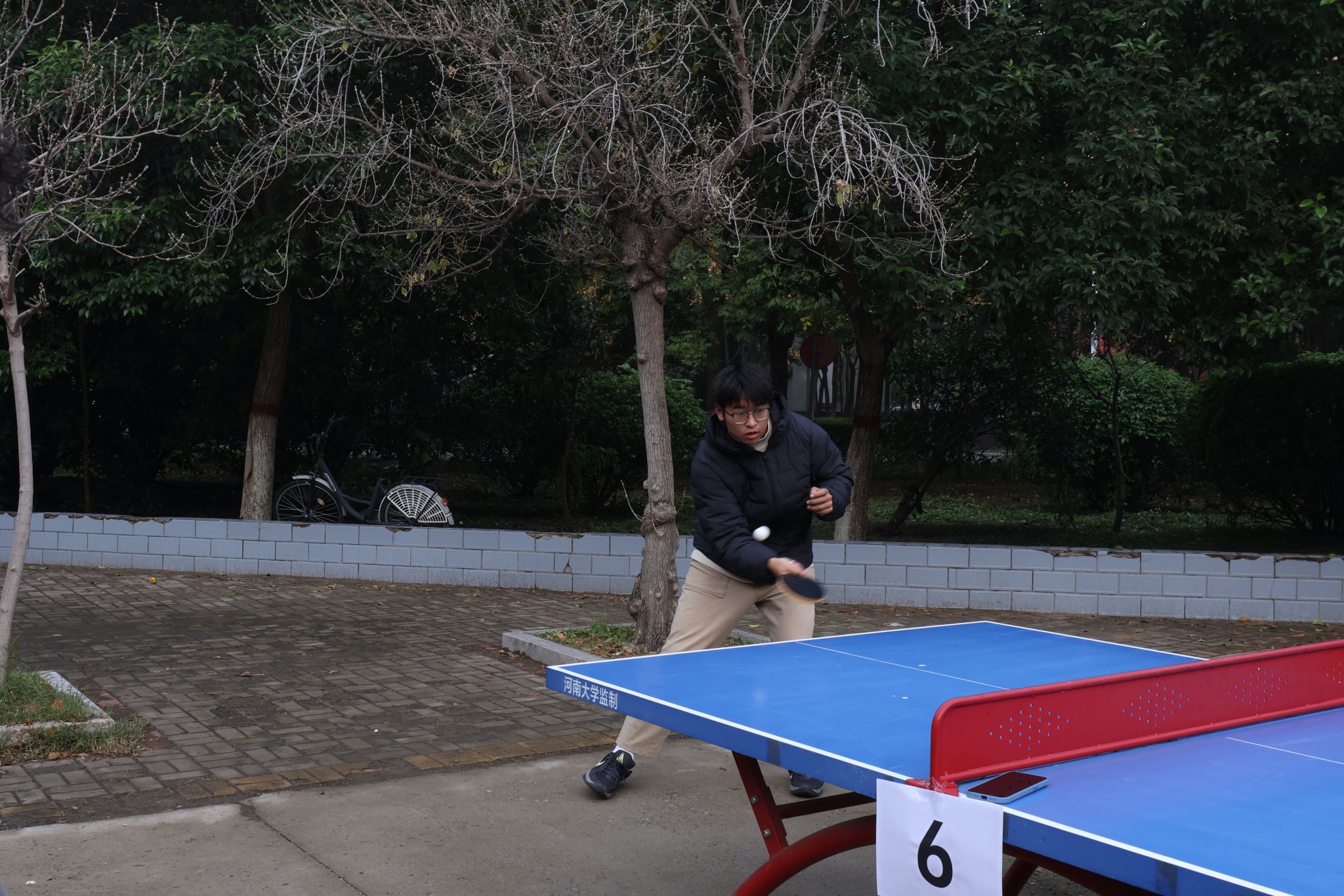 于金明校区华源北侧乒乓球台和地学楼三楼乒乓球室举行2025年“迎新杯”乒乓球赛。