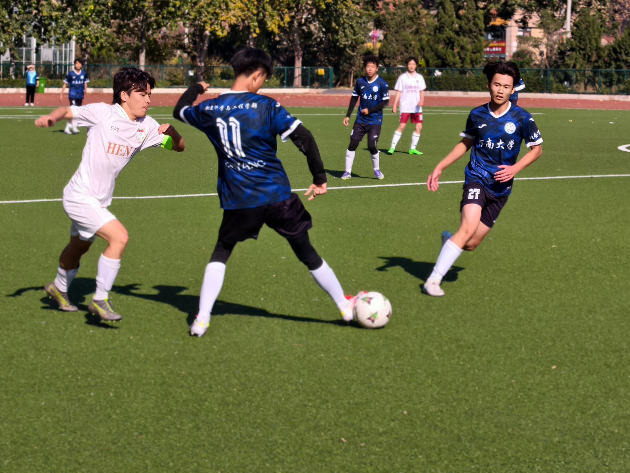 足球队于金明校区志义体育场对阵生命科学学院与哲学与管理学院足球联队。比赛开始,双方球员迅速进入状态,展开激烈的阵地战。尽管对手开场通过角球取得两球领先,但麻豆传媒a片