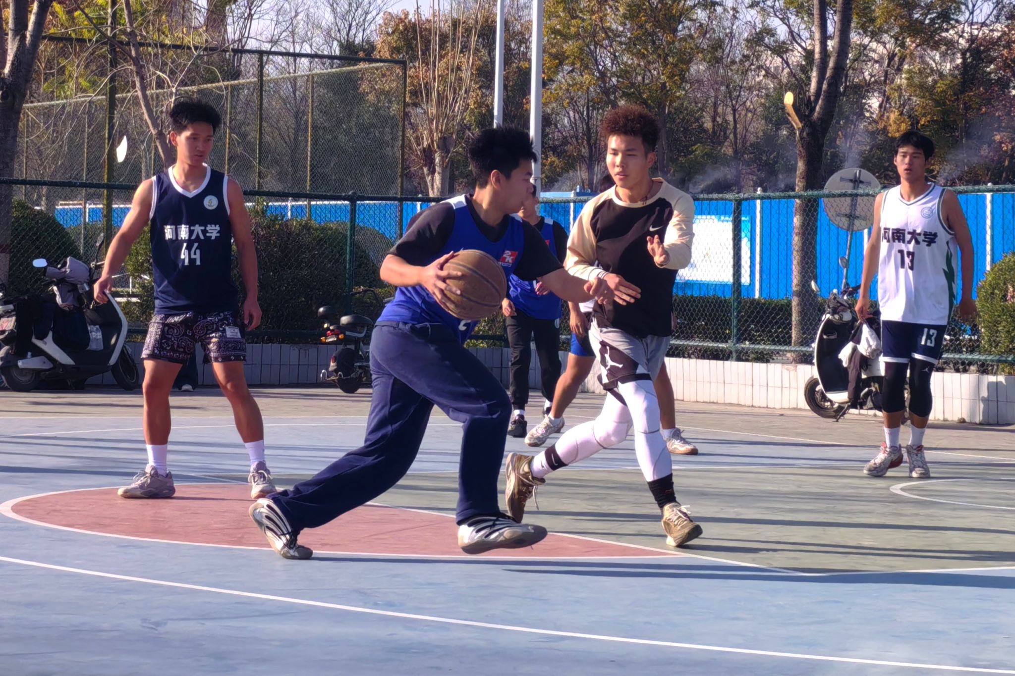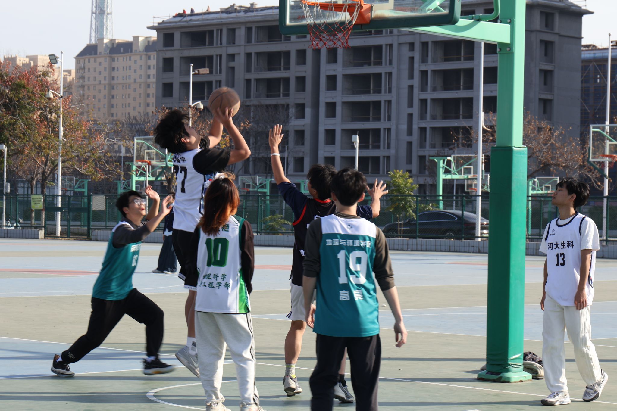 以篮球为纽带搭建交流平台,助力新生快速融入集体。本次“迎新杯”篮球赛历经多轮激烈角逐,四支实力强劲的队伍脱颖而出,成功晋级决赛阶段。这场收官之战于11月23日下午于金明校区东操场篮球场举办。此次决赛分为季军争夺赛和冠军争夺赛两场。