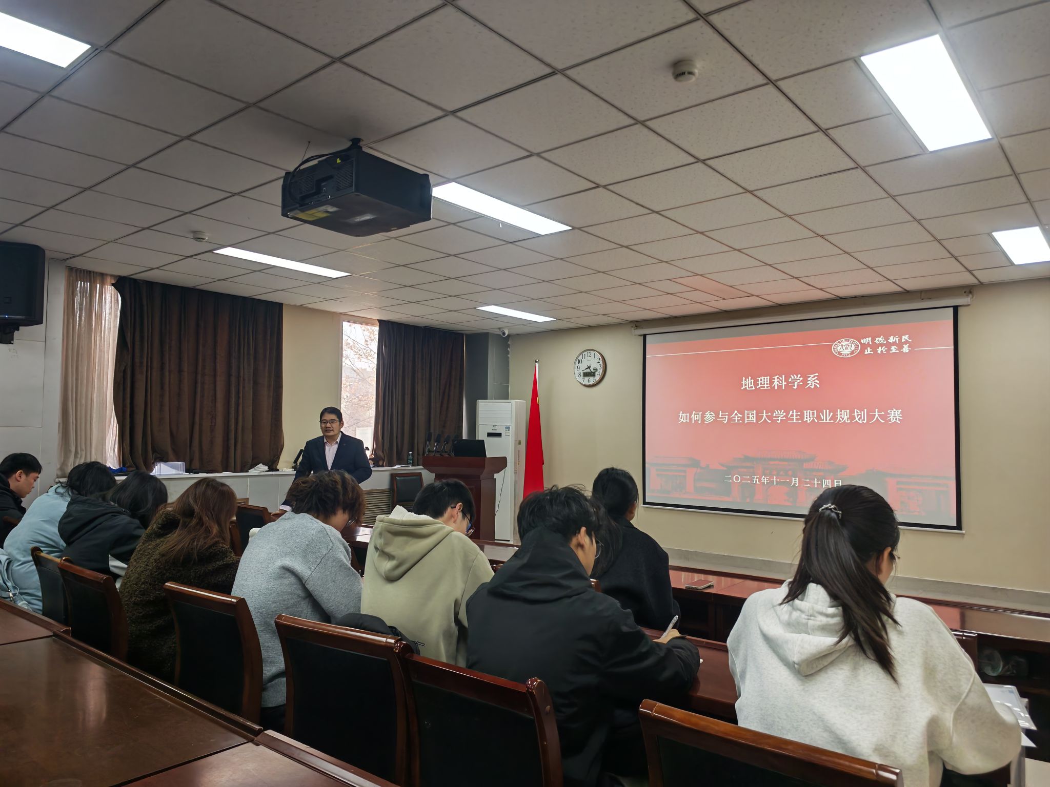 为进一步提升学生参与全国大学生职业规划竞赛的实战水平,激发青年学子创新创业热情与职业发展意识,11月24 日上午8:10至12:30,地理科学系 “STEP”创新实践课第六讲在地学楼二楼报告厅顺利举行。本次活动由2023级辅导员屈利铭老师主持,麻豆传媒a片