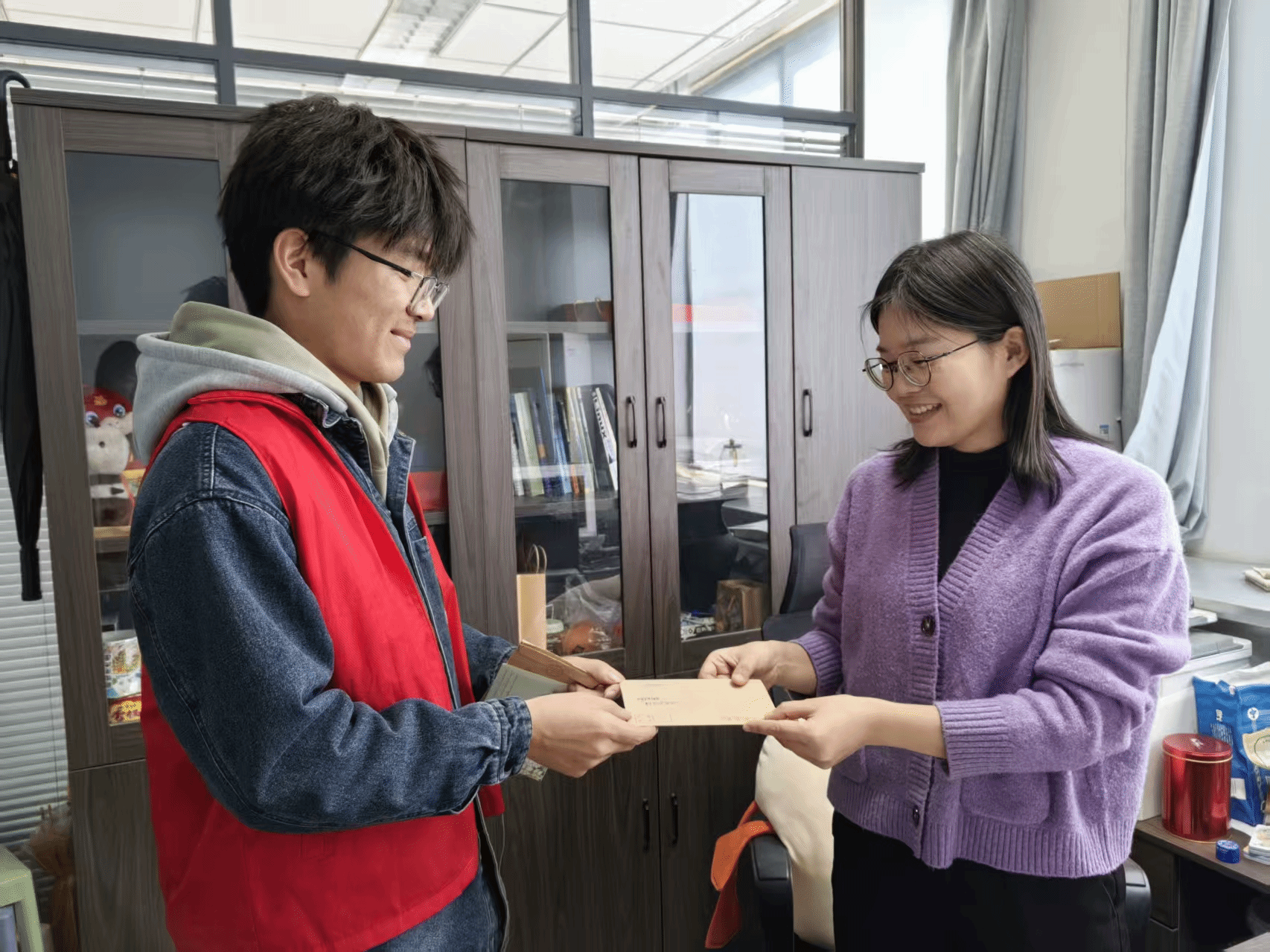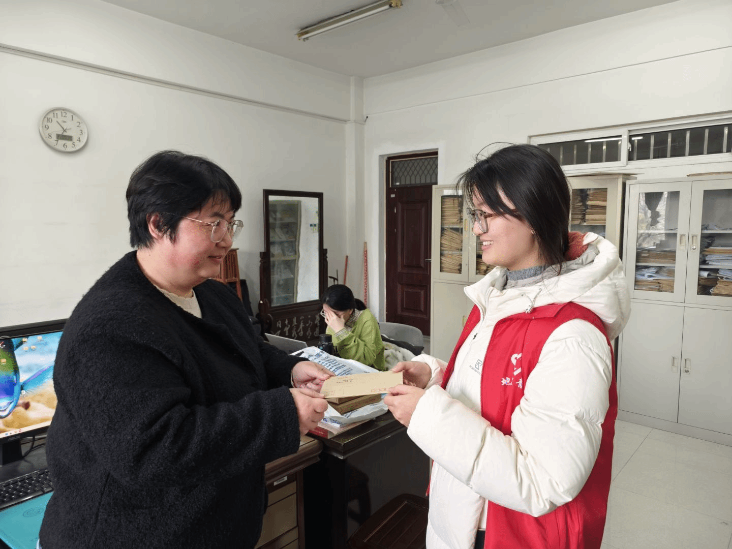 11月22日至23日,在参与者们将饱含心意的信件投入信箱后,志愿者们化身“校园信使”,逐一分拣、精准送达每一份牵挂。每一封手写信的递出,都承载着字里行间的真挚牵挂与深切敬意:学生接到挚友祝福时的雀跃惊喜,老师读到学子心声时的温暖欣慰,无不彰显着文字传递的纯粹美好与情感力量。