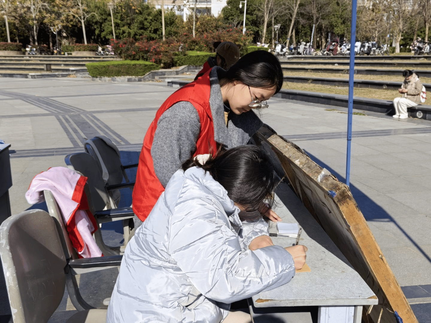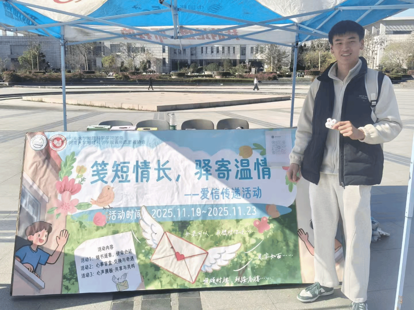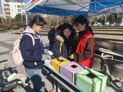青年志愿者协会面向学校全体师生于金明校区下沉广场举办以"笺短情长,驿寄温情"为主题的"爱信传递"活动。