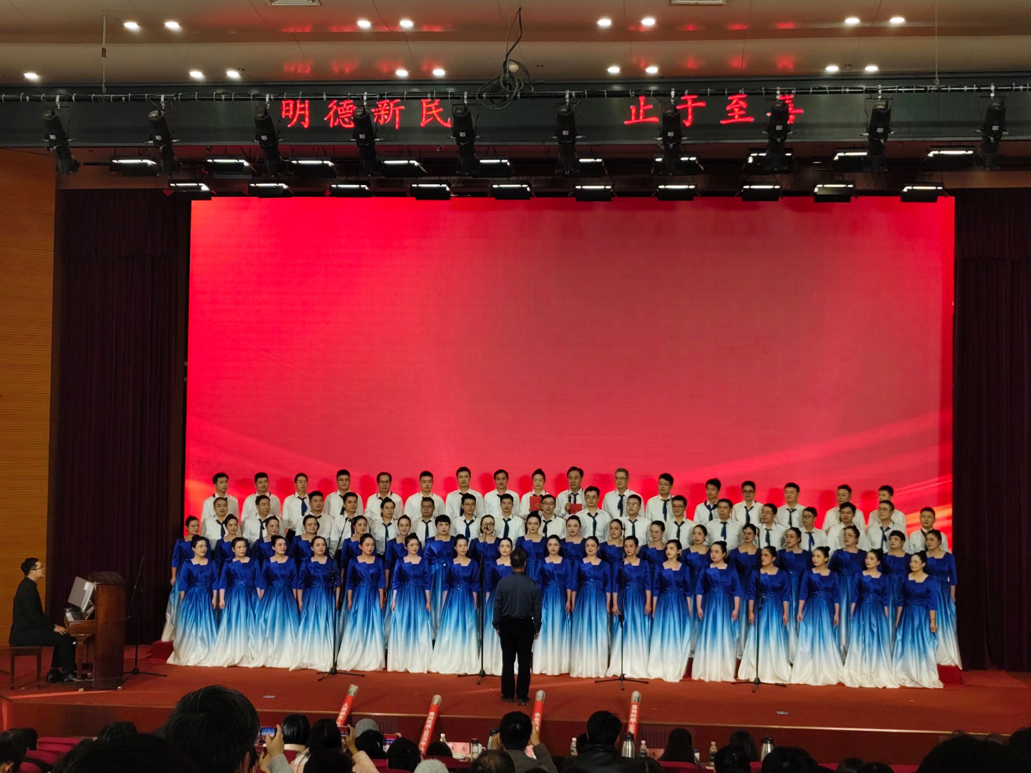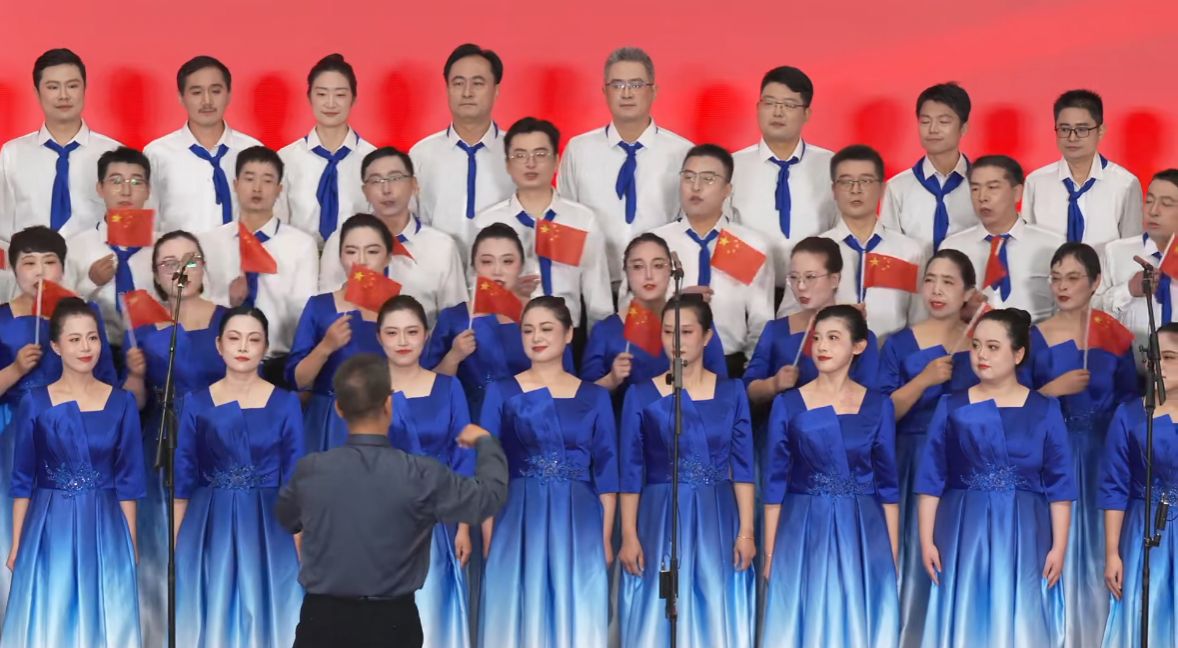 76位教职工参加并演唱歌曲《天耀中华》。