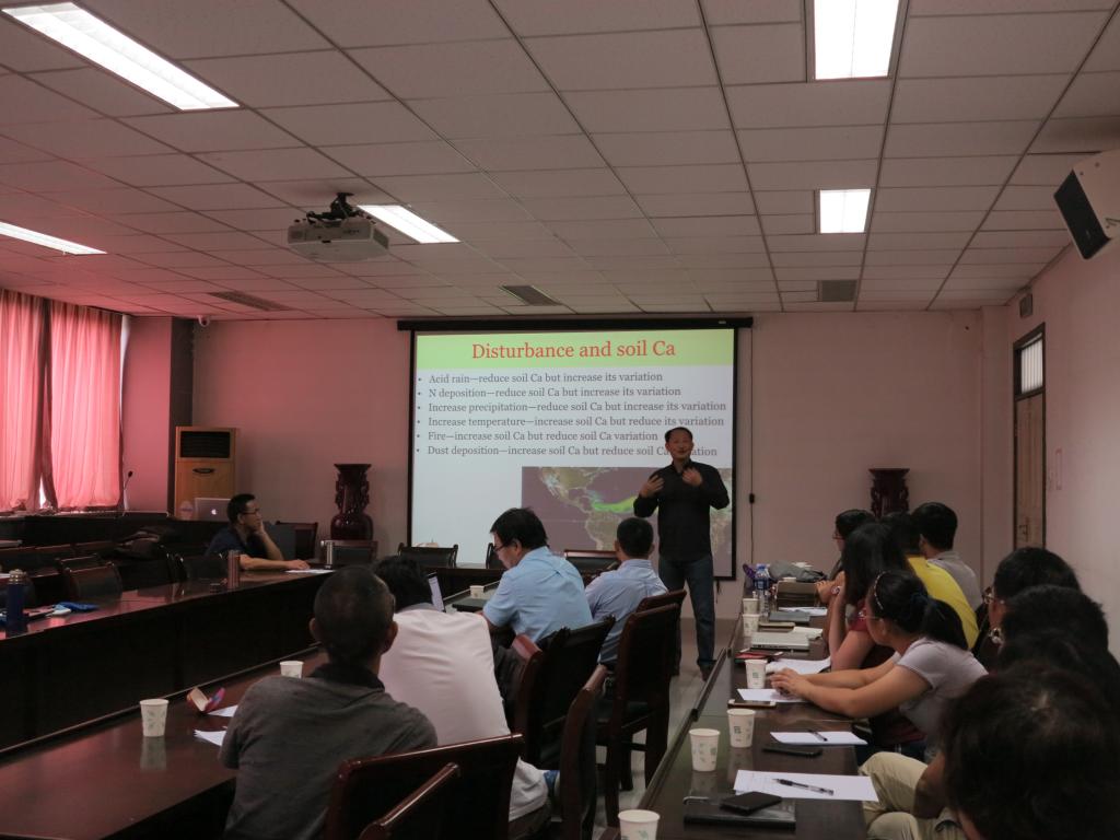 研讨会上,美国波多黎各大学的邹晓明教授做了题为“Latitudinal Biodiversity Gradient—Plants and Microbes”的学术报告;接着来自中国科学院沈阳应用生态研究所的方运霆研究员以“森林生态系统氮循环研究进展”为题作了报告;中国科学院华南植物园研究所的刘占锋研究员以“植物-土壤-微生物调控亚热带森林土壤碳固持机制”为题,来自福建农林大学的易志刚教授以“Effect of global change on exchange of VOCs between biosphere and atmosphere”为题,来自青海大学的王晓丽副教授以“高寒草地生态系统恢复及草地放牧制度优化管理研究”为题,中国科学院西双版纳植物园的刘胜杰博士以“Food web topology and biodiversity”为题分别做了详细的学术报告。与会的各位专家进行了热烈研讨与交流,并对“土壤食物网的结构与功能”专著的编写进展、内容调整和优化等方面进行了详细的讨论。