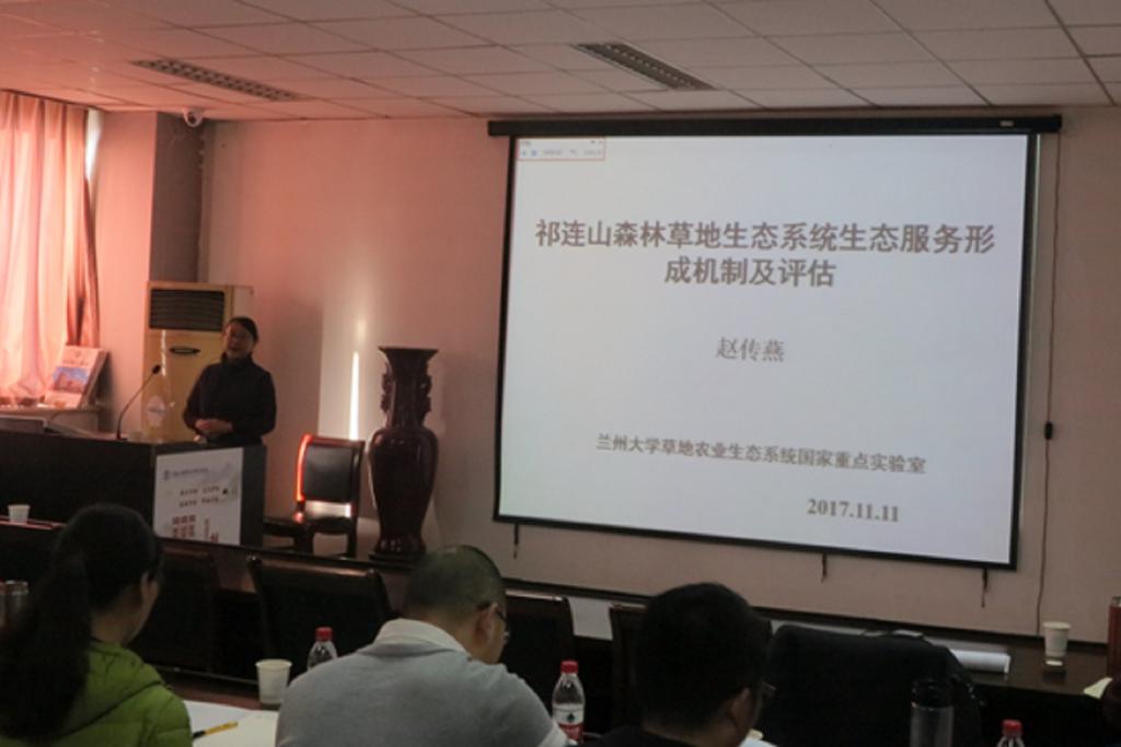 兰州大学草地农业生态系统国家重点实验室赵传燕教授以“祁连山森林草地生态系统生态服务形成机制及其评估”为题开始了本次会议的第一场报告。随后,郑州大学荐圣淇博士做了“黄土高原丘陵沟壑区人工植被生态水文过程研究”的报告;中科院寒旱所陈仁升研究员做了“气候和冰冻圈变化对黑河和中国寒区流域径流的影响”的报告;兰州大学李常斌教授围绕洮河流域的区域尺度生态水文的问题做了报告;兰州大学徐浩杰博士以“亚洲内陆干旱区植被对气候变化的响应”为题做了报告。除校外专家外,麻豆传媒a片