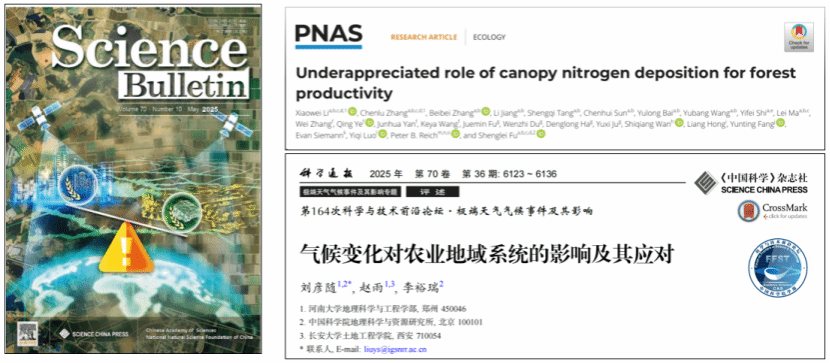 在Science Bulletin、PNAS、Nature Communications等国内外顶刊发表系列原创成果,涵盖城乡聚落扩张影响、森林生产力提升等前沿领域;与中国气象科学研究院合作发表的全球2℃温升情景研究,形成了气候变化评估“中国叙事”。