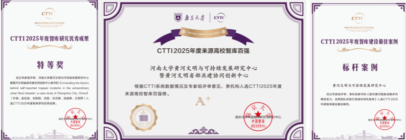 践行地理学科服务社会的初心使命,2025年黄河文明与可持续发展研究中心入选CTTI智库百强A+,两项成果获CTTI特等奖、二等奖,3份咨询报告得到中央领导批示、多部委重视,为黄河流域国家战略、乡村全面振兴注入强劲智力支撑。