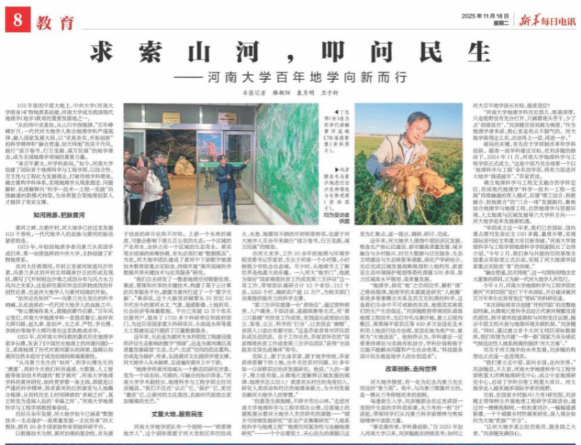 地理学科持续举办了34年“地球日”——“球生之路”活动,今年独特的国际化育人模式创建,得到Global Times关注并头版报道;新华每日电讯刊发了百年河大地学《求索山河,叩问民生》专题报道,突出了人与自然和谐共生的现代化和“两山论”创新实践。