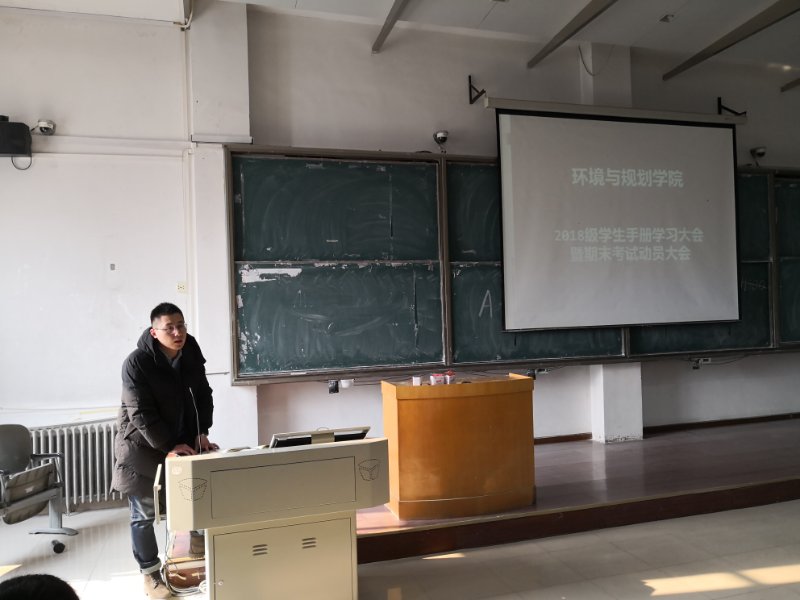 2018级本科新生入学将满一学期。为了使学生树立正确学习观念、强化学生诚信应考意识,我院于2019年1月3日召开2018级学生手册学习大会暨期末考试动员大会。2018级辅导员王艾萍、时振钦参加并主持会议。