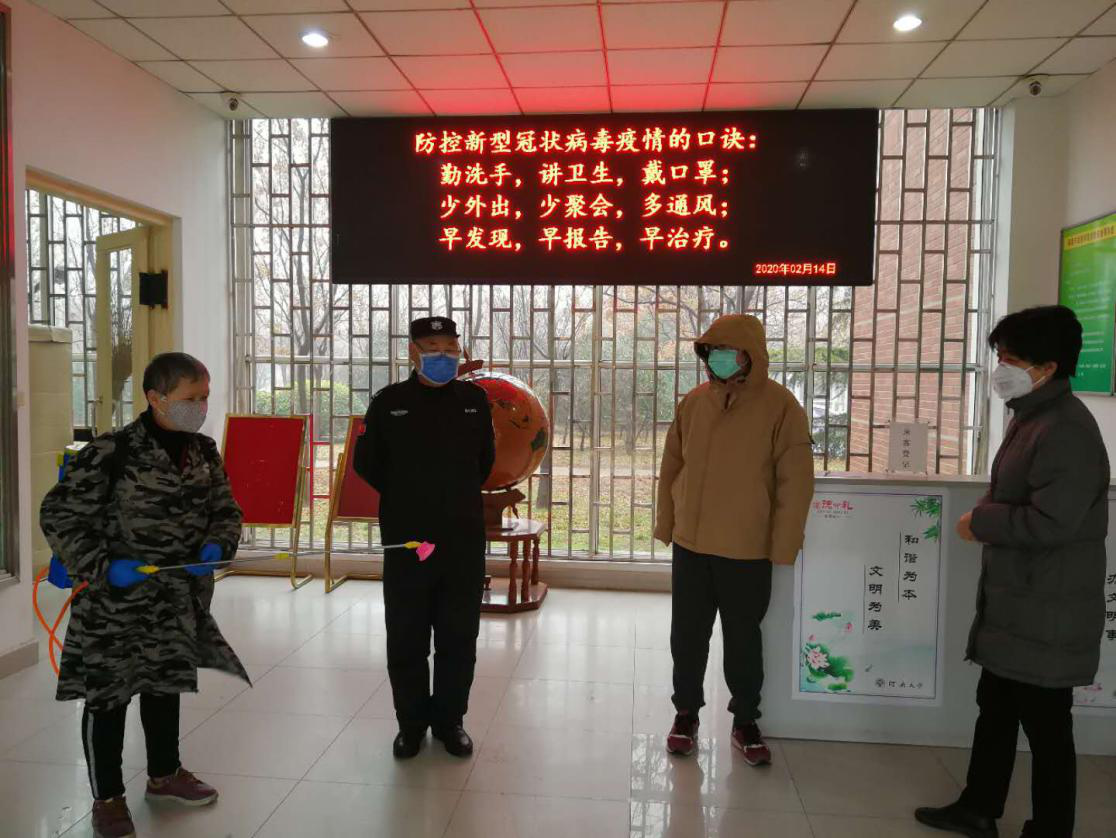 关注假期留院师生的疫情防控情况,对假期留院人员进行全面摸排,加强办公区域出入管理,按规定进行防控消毒,禁止无关人员出入,对出入人员检测体温并进行详细登记。严格落实值班制度和信息报送制度,对假期上岗的学院值班人员、物业和安保值守人员进行疫情防控教育培训,实行24小时值班无缝衔接,切实保证防控责任的落实,有效维护学院安全稳定。