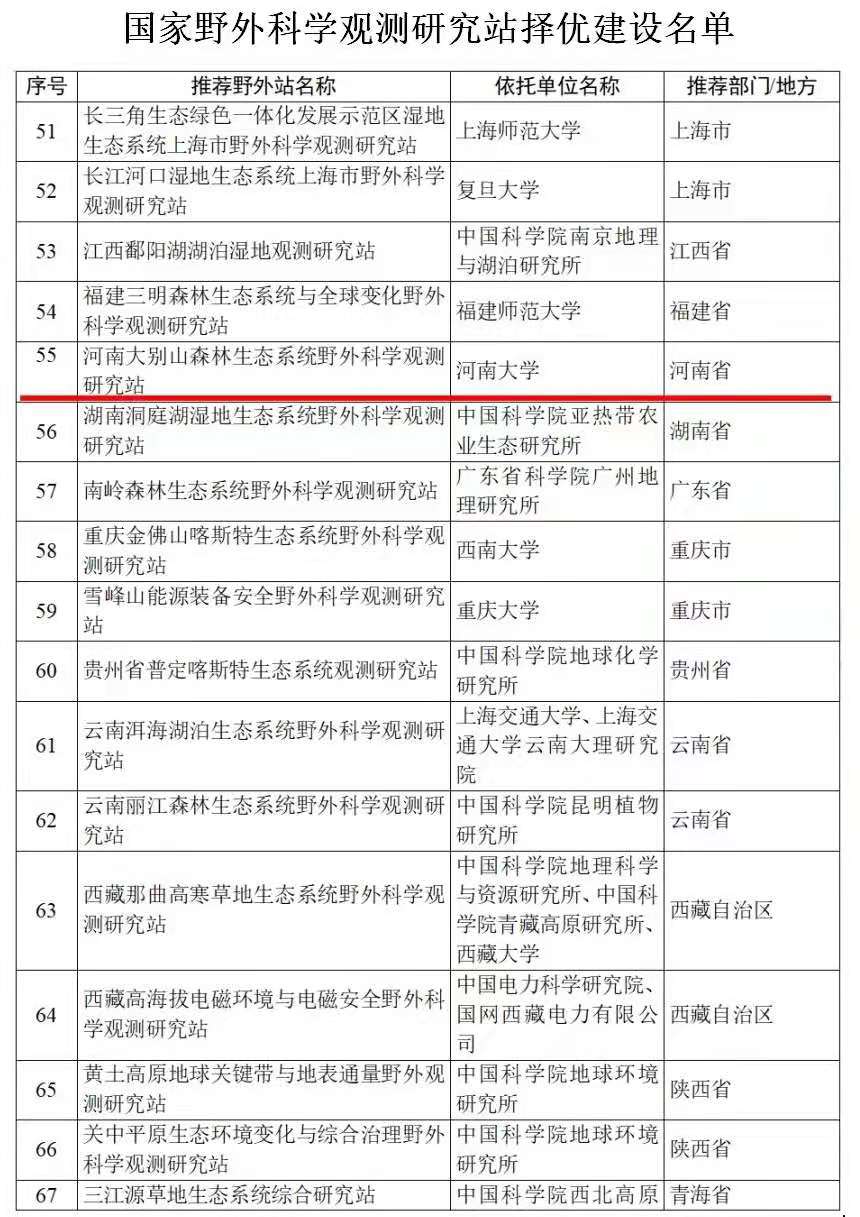 建设的“河南大别山森林生态系统国家野外科学观测研究站”(简称大别山国家站)入选国家野外站择优建设名单之列。