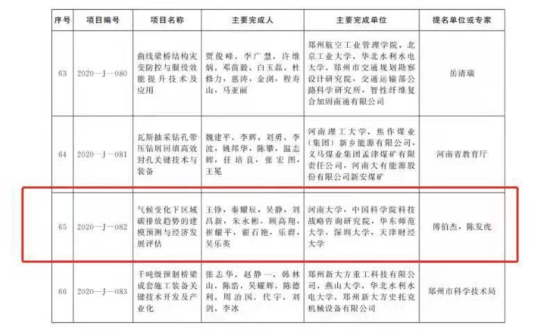近日,河南省人民政府发布关于2020年度河南省科学技术奖励的决定。其中,我院的“气候变化下区域碳排放趋势的建模预测与经济发展评估”项目荣获2020年度河南省科学技术进步奖二等奖。