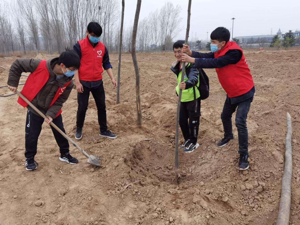 绿色联盟协会联合环境与规划学院、数学与电子学院、物理与电子学院、哲学与公共管理学院、商学院、土木建筑学院、欧亚国际学院等七个学院的青年志愿者协会,共同前往连霍高速与金明大道交叉口林场开展植树活动。