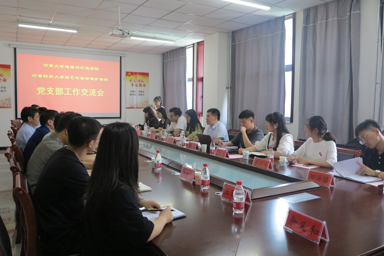 地理与环境学院党委副书记徐小军,院团委副书记、研究生第二党支部书记郑开元带领研究生党支部支委会以及其他学生代表到河南科技大学进行学习交流。河南科技大学园艺与植物保护学院党委书记白国林,园艺与植物保护学院院长陈根强,园艺系党支部书记陈双臣以及学生代表出席此次会议。会议由河南科技大学园艺与植物保护学院党委书记白国林主持,双方就全国样板党支部创建培育工作开展深入交流学习。