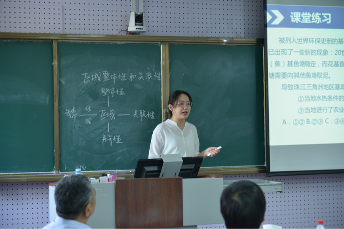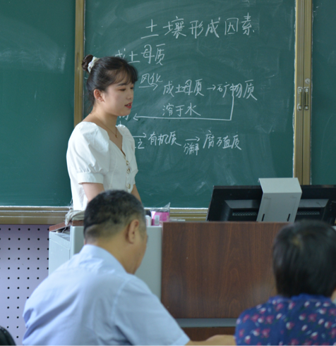 比赛采取抽签的方式进行,学生从规定的五个题目中随机抽取一个,进行十分钟左右的模拟课堂教学。同学们经过一段时间的精心准备,教学设计文本从目标设计、资源开发、方法选择到教学过程、学生活动、板书设计等方面均体现出较高水平的科学性与合理性。讲台上,同学们意气风发,挥洒自如,通过多种方式与手段展示自己的教学技能、技巧,语言表达流畅,板书规范,教学理念新颖,突出学生的学习过程与学习方法,彰显出了研究生扎实的教学基本功和高水平的地理素养。