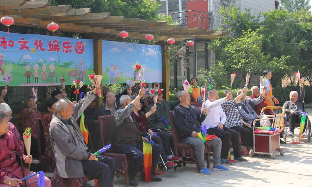 活动现场,由孟柯担任主持人,向老人们介绍志愿者精心准备的歌舞节目。土木建筑学院的志愿者表演了诗朗诵《我和我的祖国》与歌曲《探清水河》,我院学生带来歌曲舞蹈《听我说谢谢你》与《粉红色的回忆》,勾起了老一辈建设者的青春回忆。老人们打着节奏,挥舞着手中的彩色丝带,庭院里欢声笑语此起彼伏。在欢快的氛围下,台下的老人们也纷纷上台表演才艺,一曲《红色娘子军》,展现了他们不减当年的爱国热忱。郑淑宾奶奶用手风琴演奏的《山楂树》,更是讲述了她曾经的事迹。她还寄语志愿者们:要好好学习、珍惜时光年华。表演结束后,志愿者们在室内同老人们聊天、下象棋,听他们讲述曾经的动人故事,活动在大家的欢声笑语中结束。