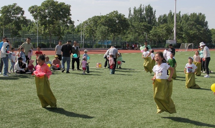 金明校区东操场举行庆祝工会活动暨庆“六一”国际儿童节教工亲子运动会,本次工会活动由区域与城市科学工会小组具体承办。