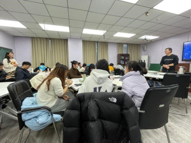 附属中学的丁恒老师在地学楼二楼实训室开展以“地理教师专业成长”为主题的座谈会,2023级学科教学(地理)专业全体研究生参加。