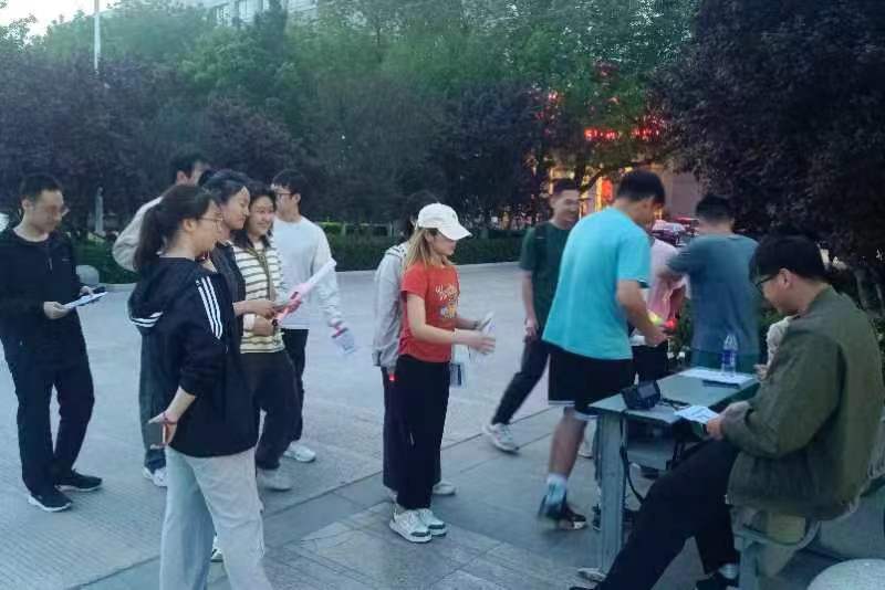 夜幕降临前,参加本次活动的学生们在我院楼前摊位集合,领取打卡表和荧光手环。在工作人员交代相关注意事项并集体合照后,活动正式拉开帷幕。本次活动共设置六个必经点和四个选经点,在打卡点处设有正话反说、听歌识曲、环保知识问答等多项有趣的活动和小挑战。夜跑过程中,学生们热情高昂,奋力前行,他们用脚步丈量青春,用激情追逐时光,苍穹之上,点点跃动的荧光汇聚成一道光河,点亮校园的夜空,成为学校当晚最靓丽的风景线,也为学生们的大学生活绘下了绚烂的一笔,成为青春回忆中难以磨灭的华章。